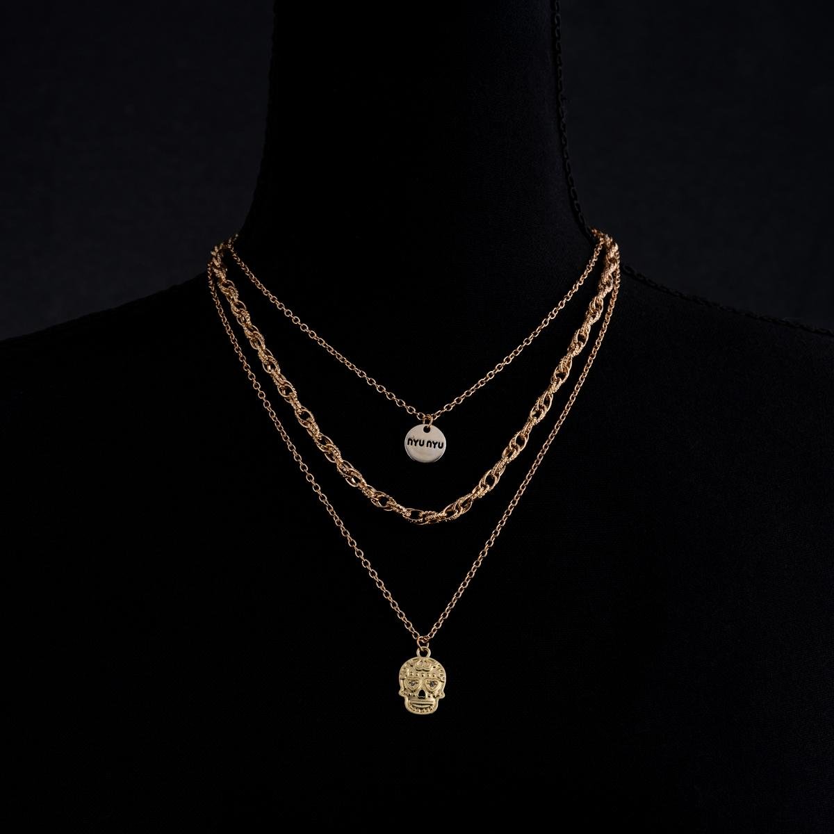 Add a touch of boldness and elegance to your look with this multi-layered skull necklace, which combines distinctive design with timeless beauty. This necklace features delicate and beautiful details, with a multi-layered skull pendant that gives your look a touch of mystery and elegance. Whether you're heading out for a night out or wanting to add a distinctive touch to your everyday look, this necklace is sure to turn heads.