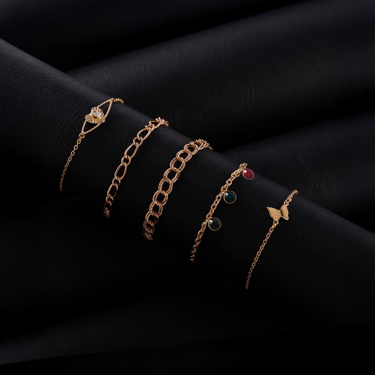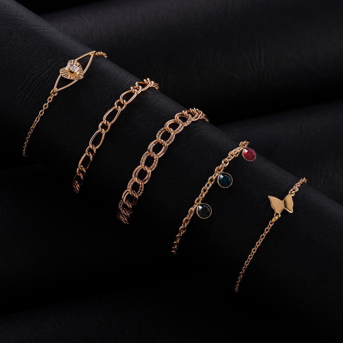 Express your free style with this boho chic beaded and butterfly bracelet set. This charming 5-piece set combines delicate beading, delicate butterfly embellishments, and elegant gold chain designs to deliver the perfect bohemian look. Whether worn individually or stacked, these bracelets are a versatile accessory that suits everyday looks or festive occasions, adding a touch of glamor to your look.