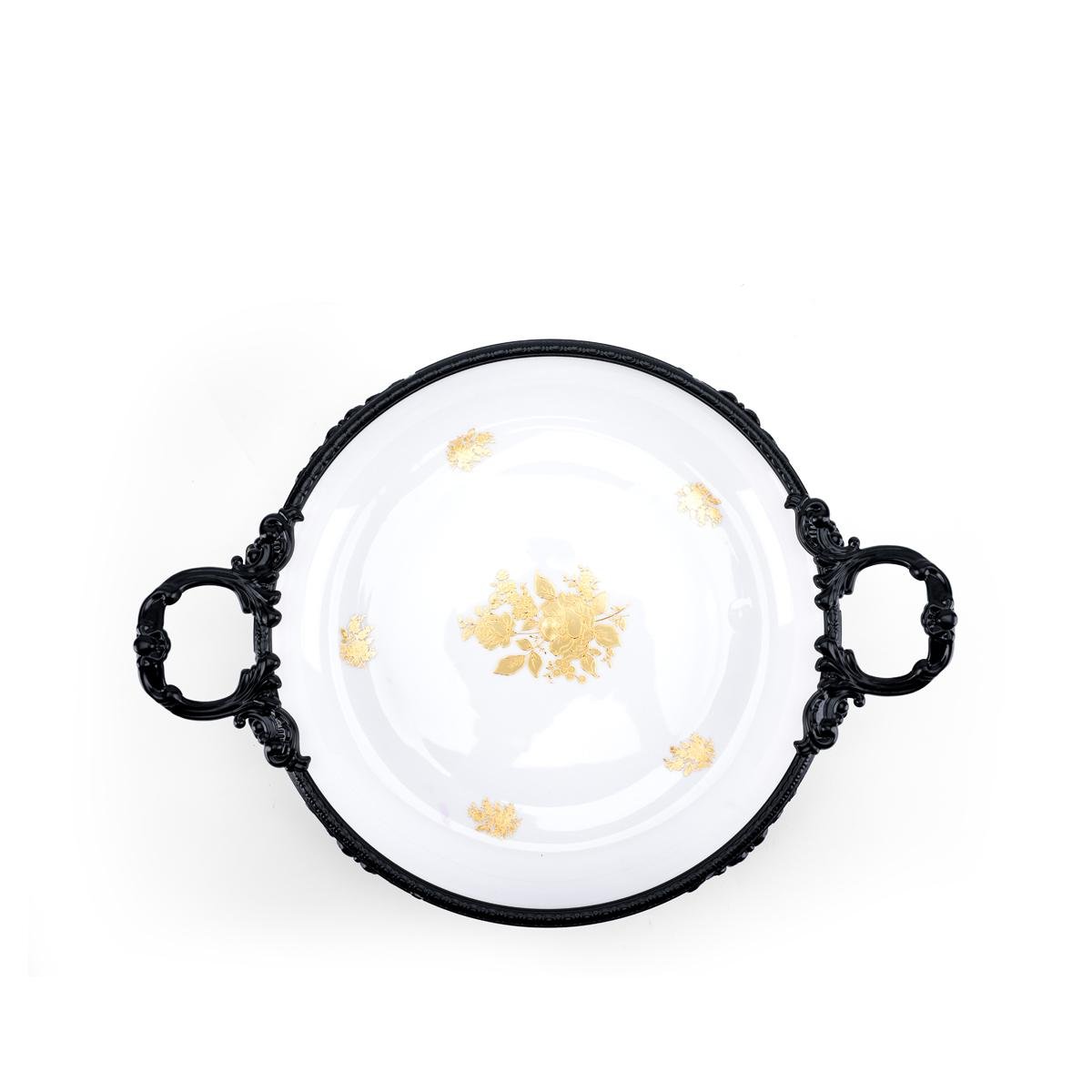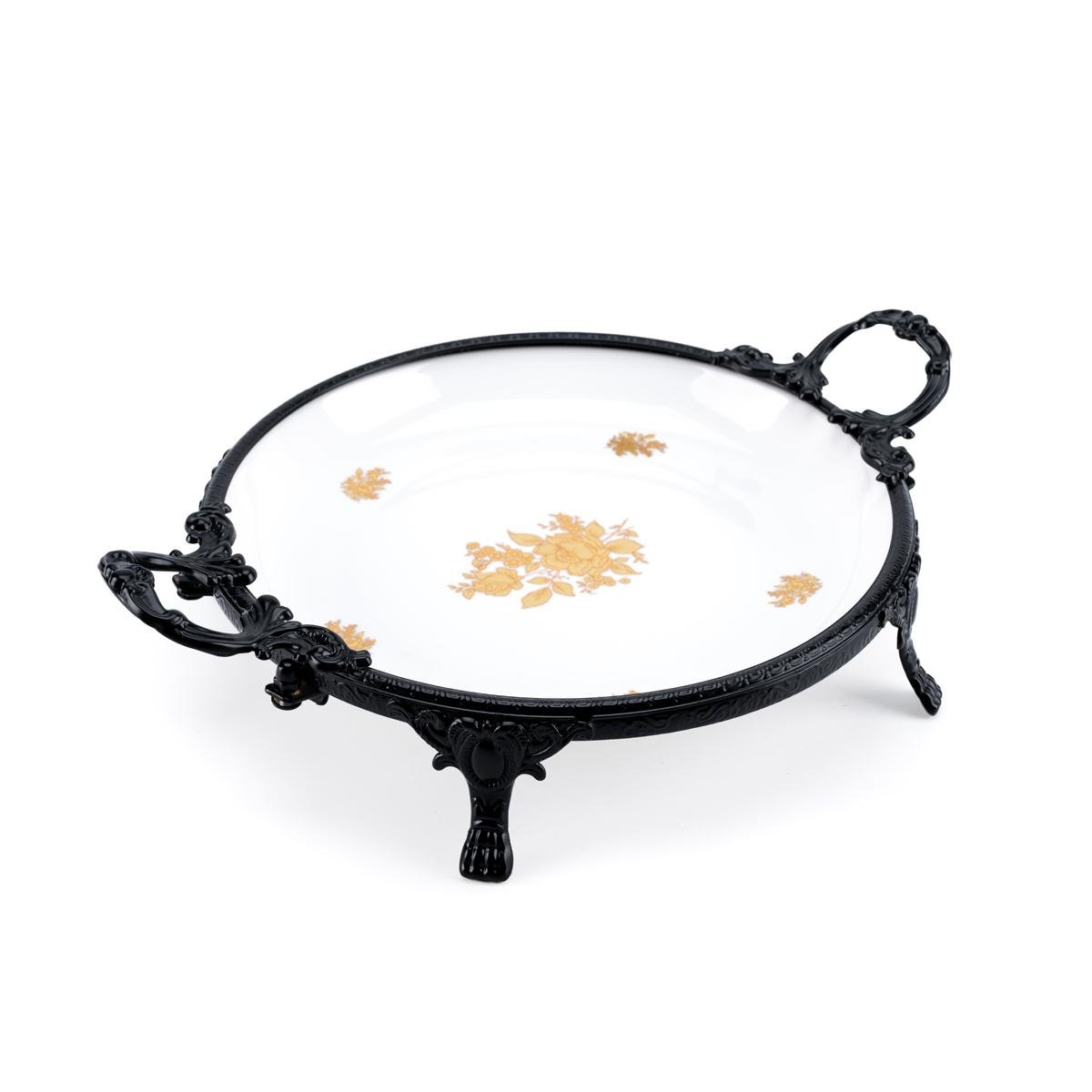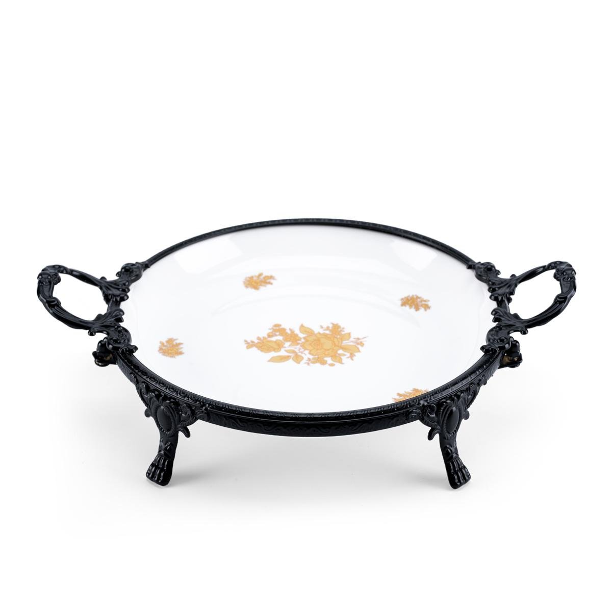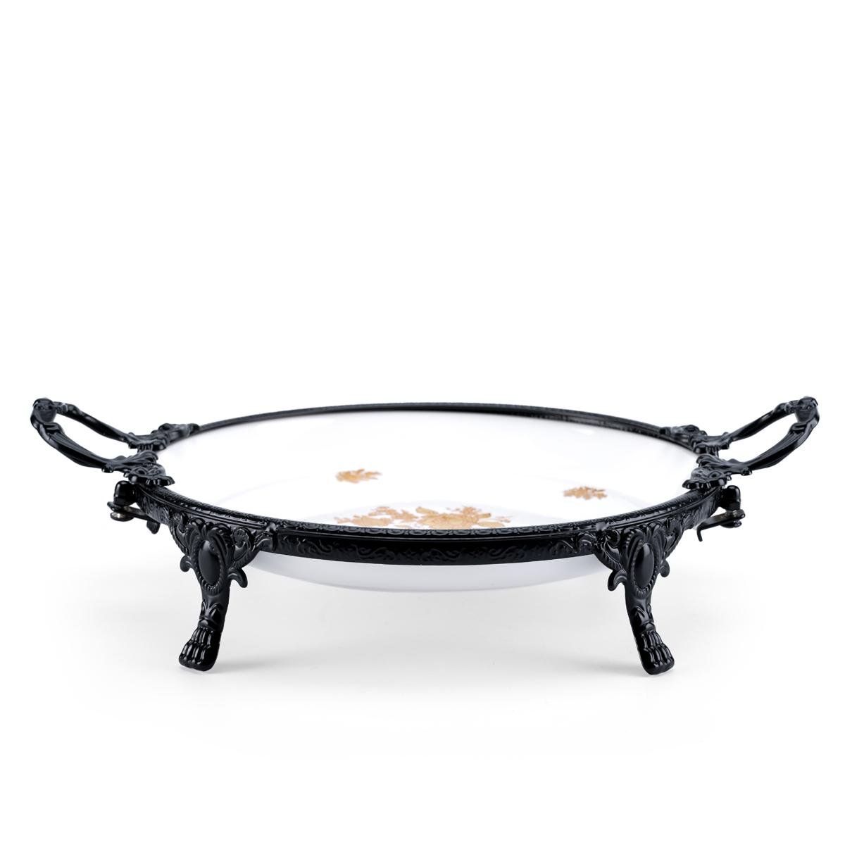 color - Black Metal frame with intricate gold and floral detailing - Dimensions: Diameter 30cm x Hight 7.5cm