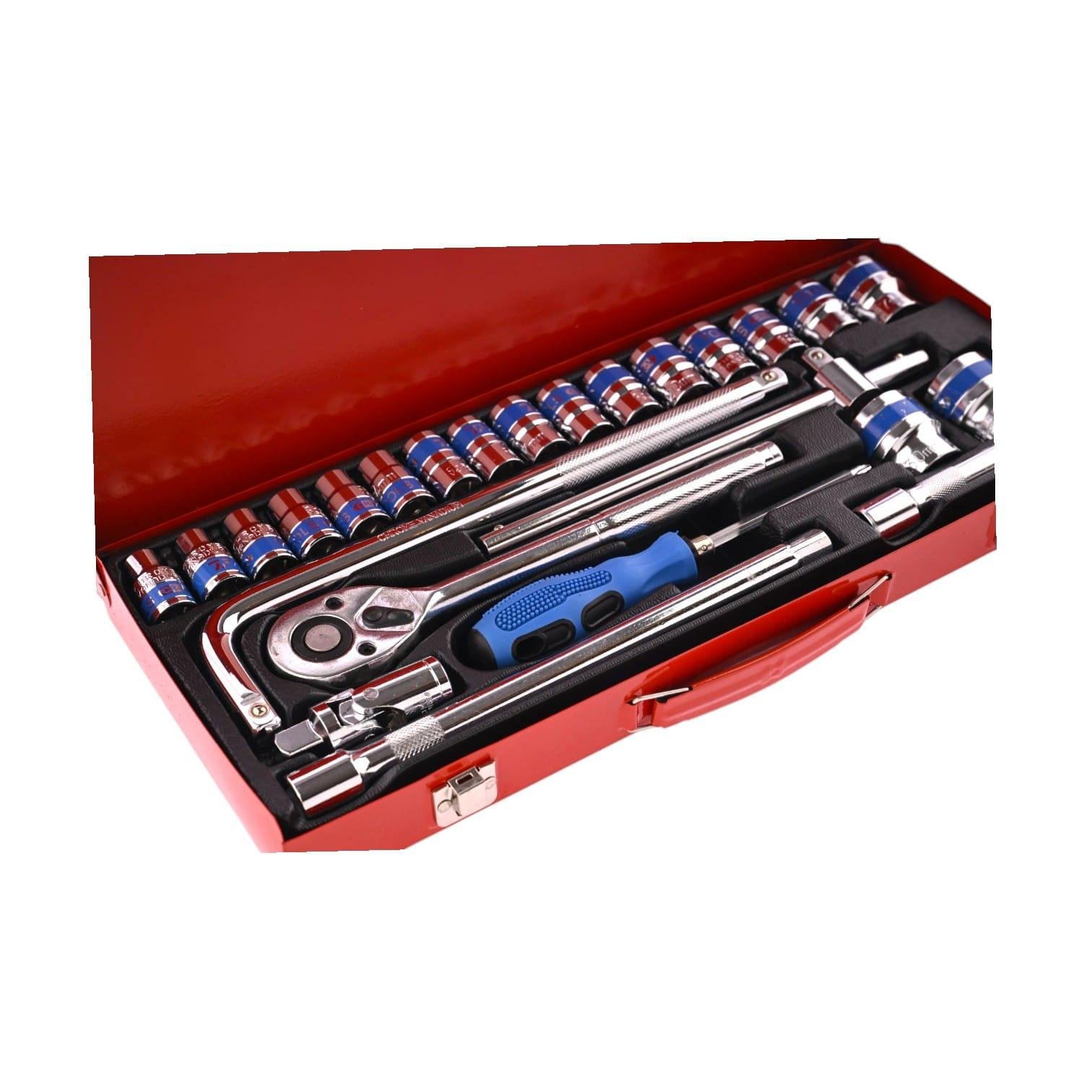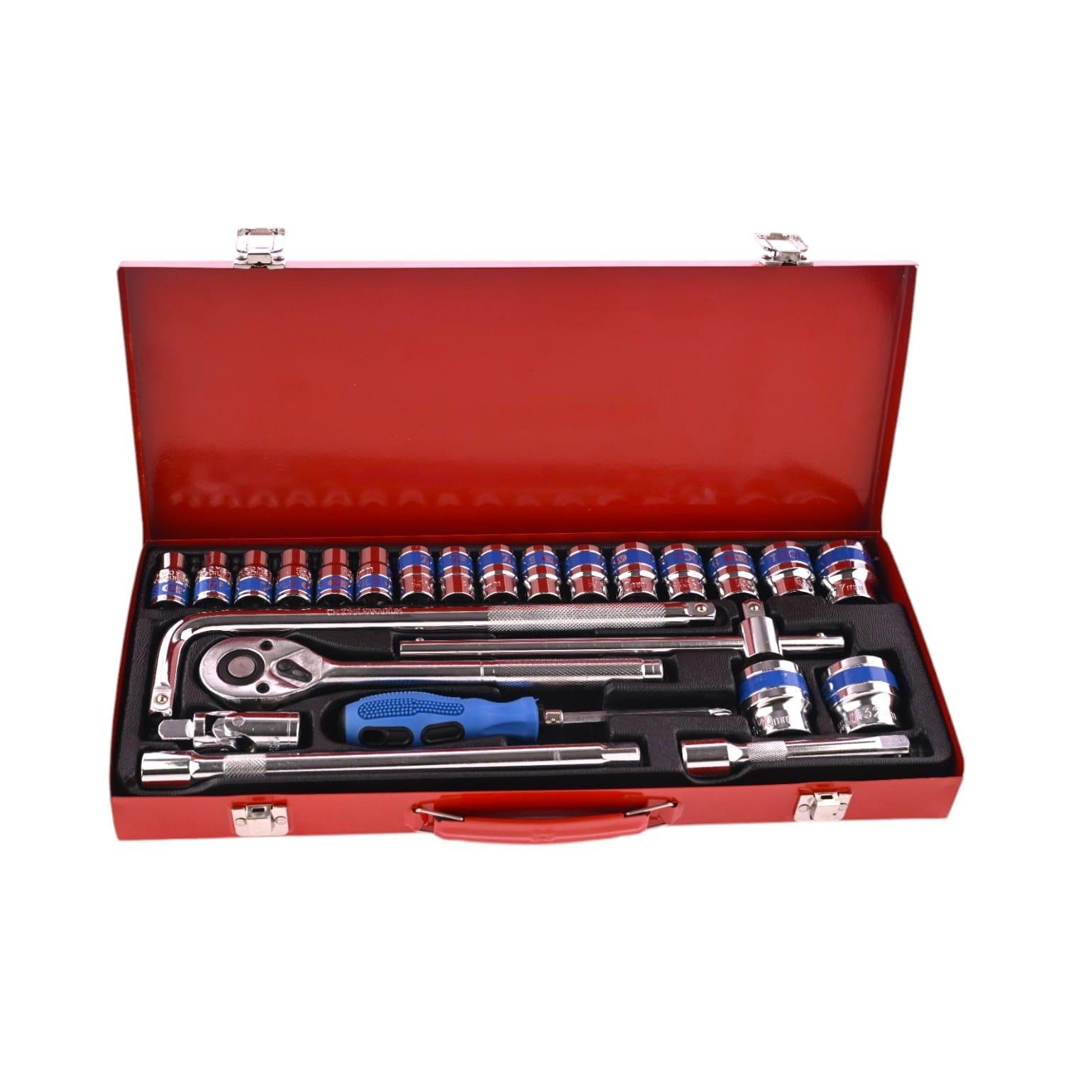 مجموعة الصناديق المكونة من 12 × 25 قطعة عبارة عن مجموعة أدوات كاملة مصممة لمجموعة واسعة من مهام الإصلاح والصيانة. يتضمن 25 أداة أساسية مثل المقابس ومفاتيح الربط ومفكات البراغي ، وكلها مخزنة بشكل آمن في حقيبة متينة ومحمولة. مثالية للمحترفين وعشاق الأعمال اليدوية ، تضمن هذه المجموعة الكفاءة والمتانة لأي مشروع.