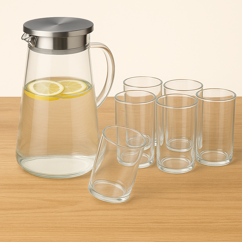 طقم زجاجي أنيق يجعل كل رشفة أكثر تميزا مع طقم مشروبات زجاجي 7 قطع