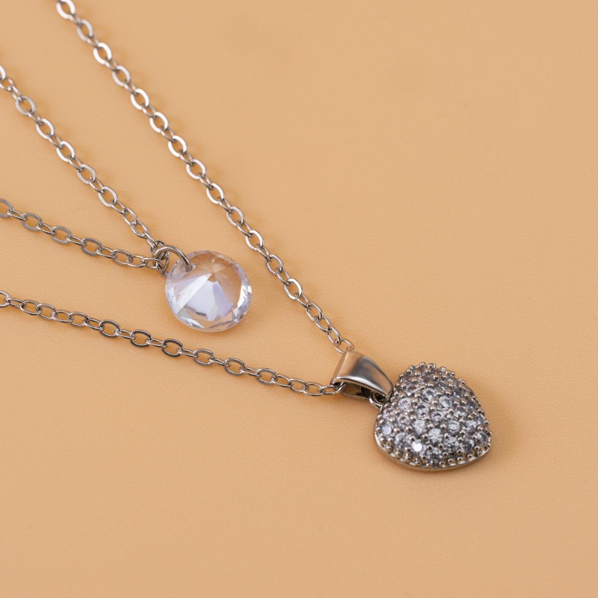 أضفي لمسة من الأناقة والسحر إلى مجموعتك من المجوهرات مع طقم عقد القلب الكريستالي مع أقراط وخاتم متناسقين. يتميز هذا الطقم الرائع بتصميم راقٍ يجمع بين لمعة الكريستال وبريق المعدن الفاخر، مما يجعله إضافة مثالية لأي إطلالة. يزين العقد بتعليقة على شكل قلب يحيط بها كريستال مقطوع بدقة، مما يمنحك لمسة رومانسية ساحرة.