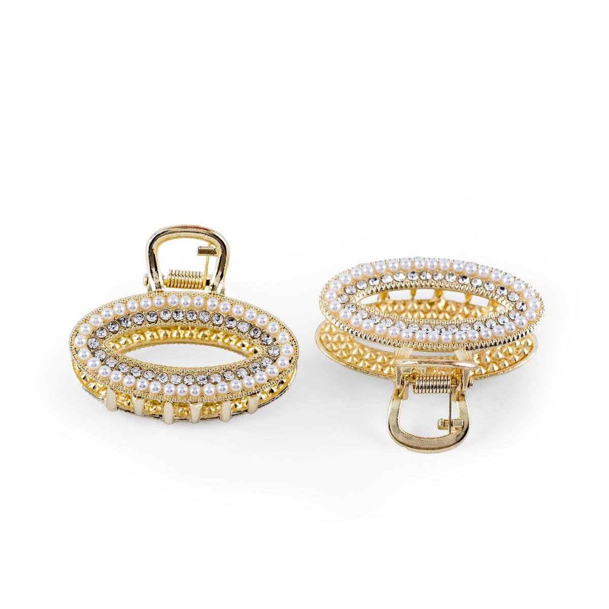 أضيفي لمسة من الفخامة إلى تسريحتك مع مجموعة مشابك الشعر البيضاوية المزينة باللؤلؤ وأحجار الراين، التي تجمع بين النعومة والرقي.