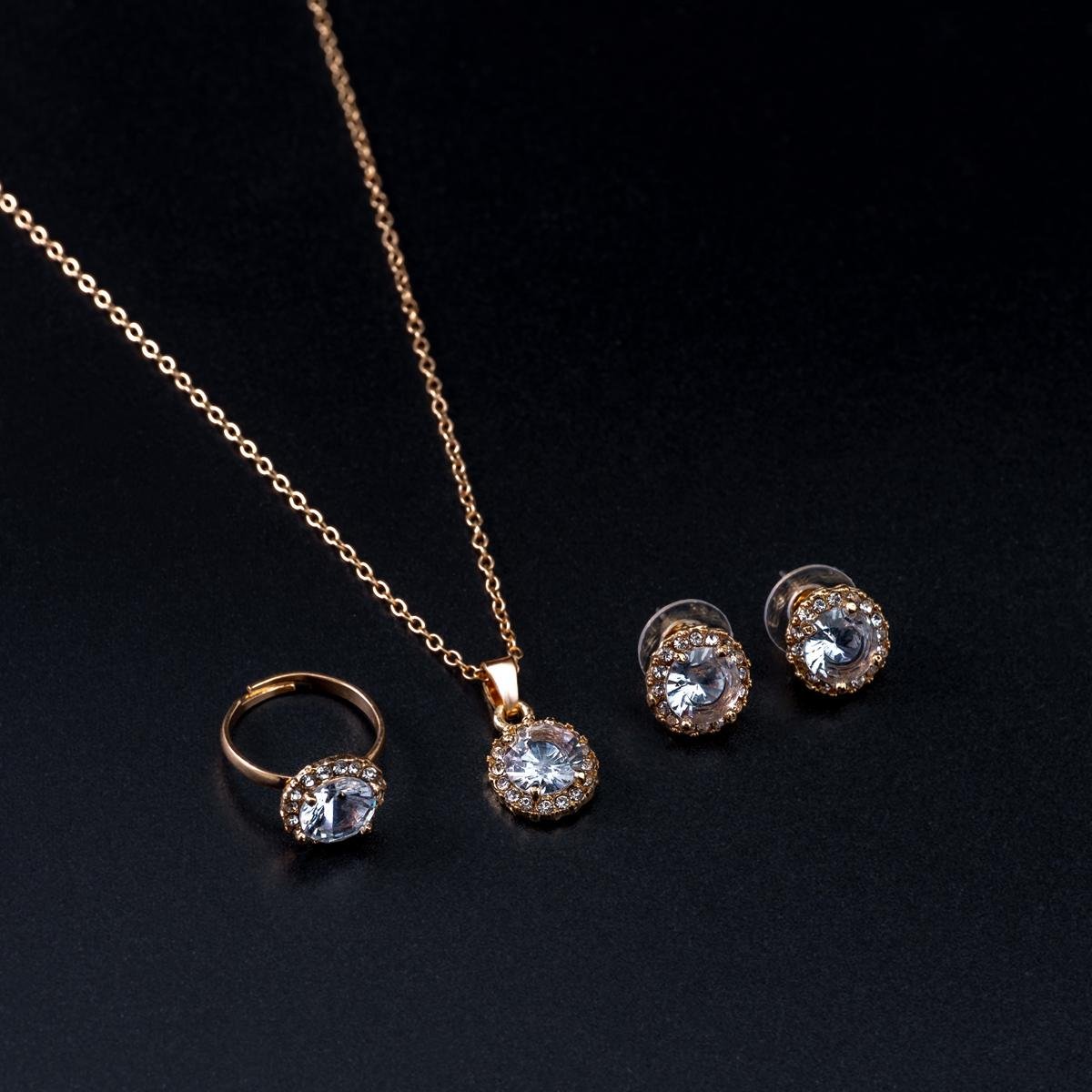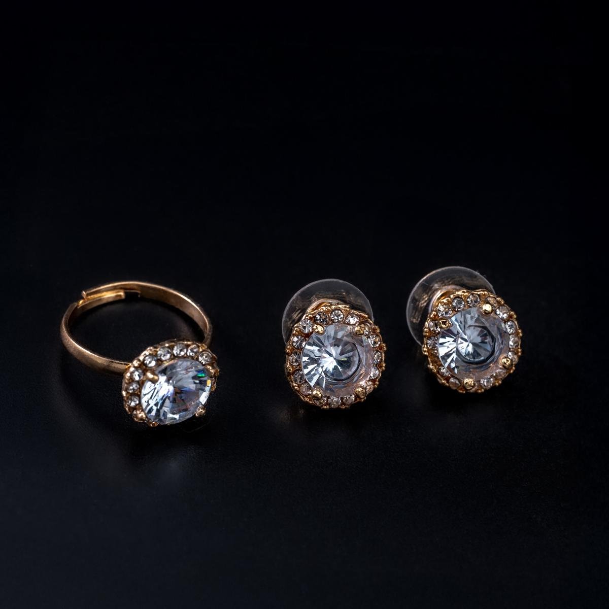 طقم قلادة وأقراط وخاتم بزركون دائري صناعي امنحي إطلالتك لمسة أنيقة بسهولة مع هذا الطقم الرائع الذي يضم قلادة بزركون دائري، أقراط مطابقة، وخاتم أنيق. مناسب لجميع المناسبات، يتميز هذا الطقم بجاذبية كلاسيكية مع لمسة عصرية، مما يجعله إضافة مميزة لمجموعتك.