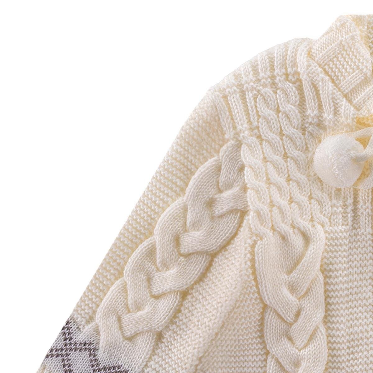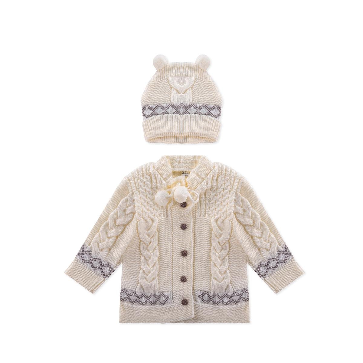 دفي صغيرك بأناقة لا تقاوم طقم التريكو هذا هو كل ما تحتاجينه هذا الشتاء مع طقم سويتر تريكو للرضع مع قبعة بأذني دب وتفاصيل بوم بوم