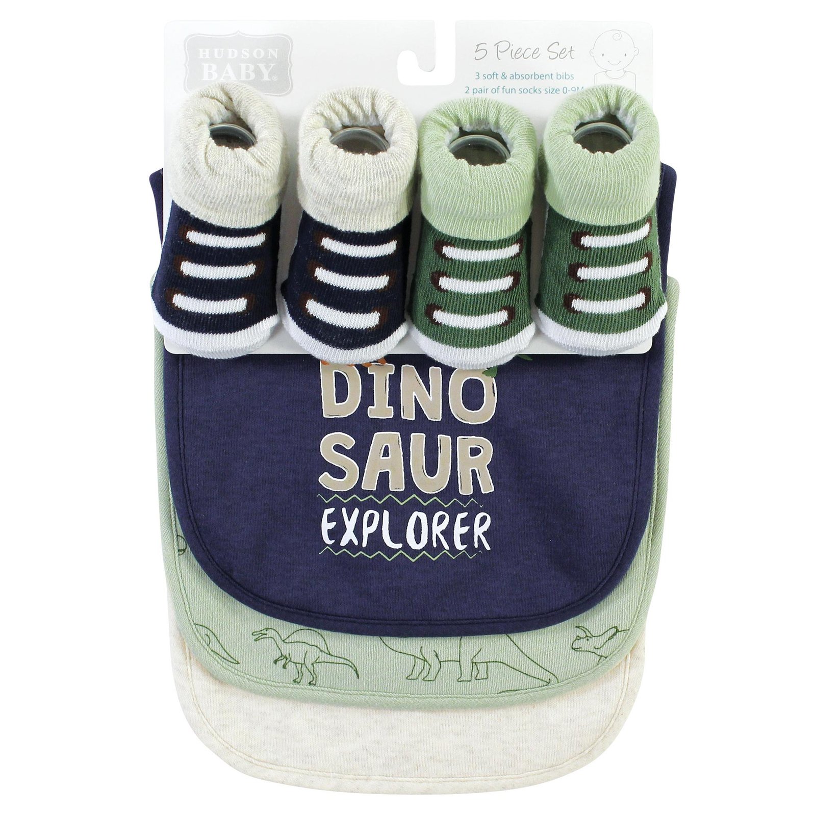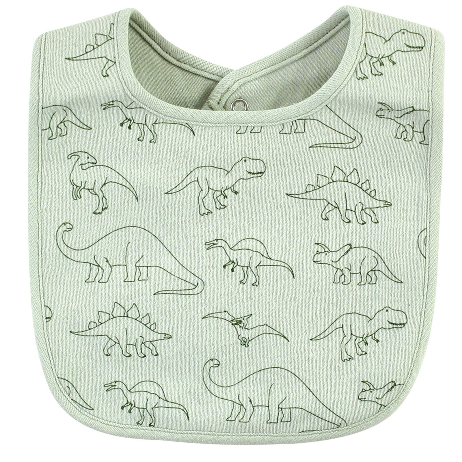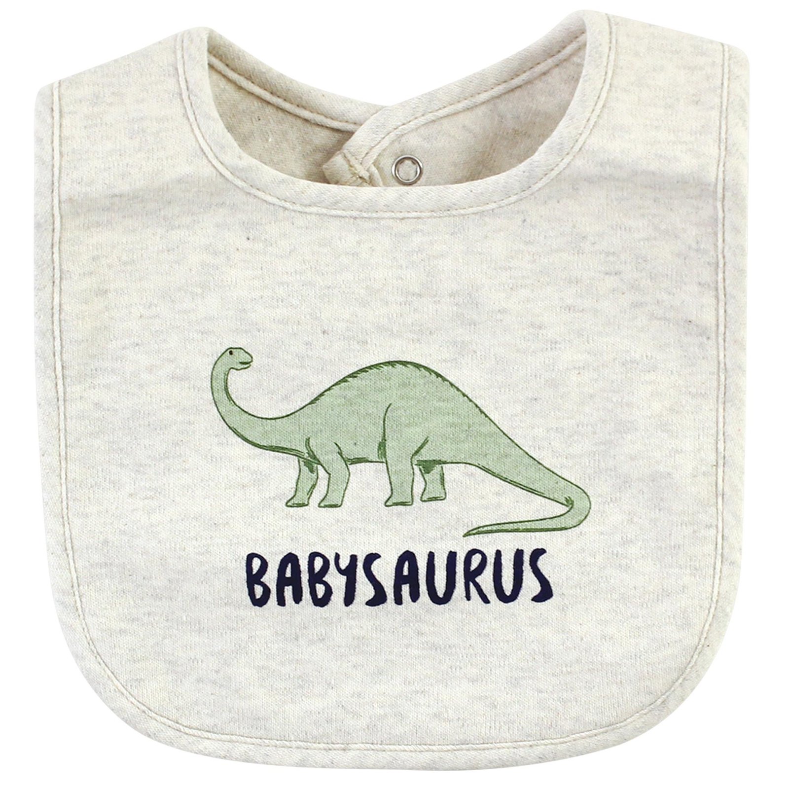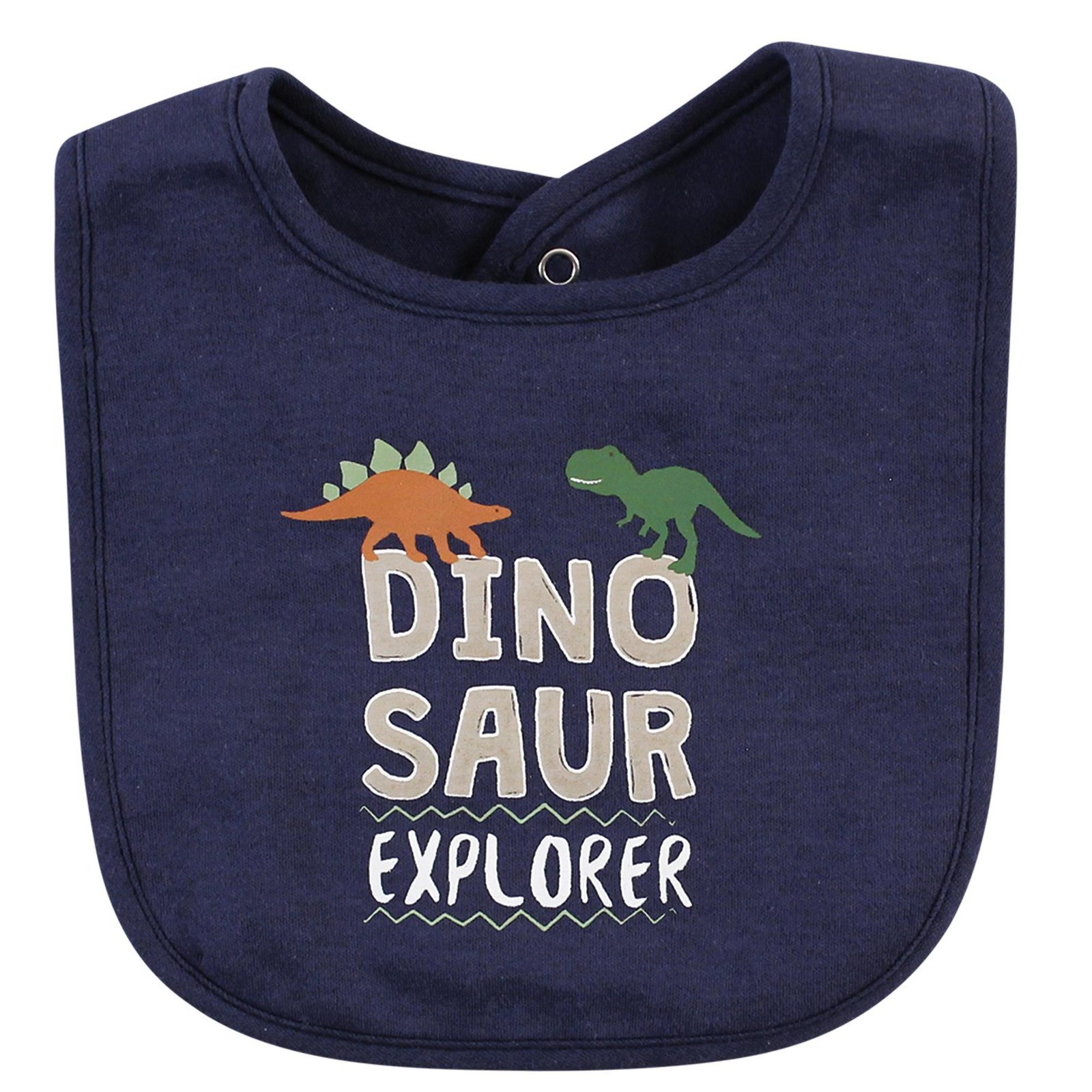 اجعلي وقت الطعام واللعب لطفلك أكثر متعة مع هذا الطقم الرائع من المريلة والأربطة بتصميم مستكشف الديناصورات.