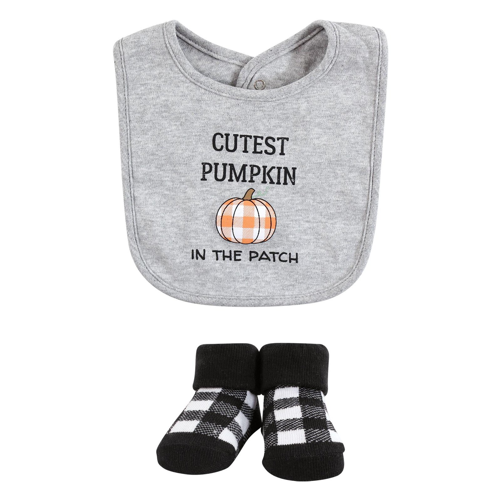 يتكون هذا الطقم المكون من مريلة وشراب قدم من القطن بتصميم شاحنة اليقطين من مزيج مثالي بين الراحة واللطف لطفلكم.