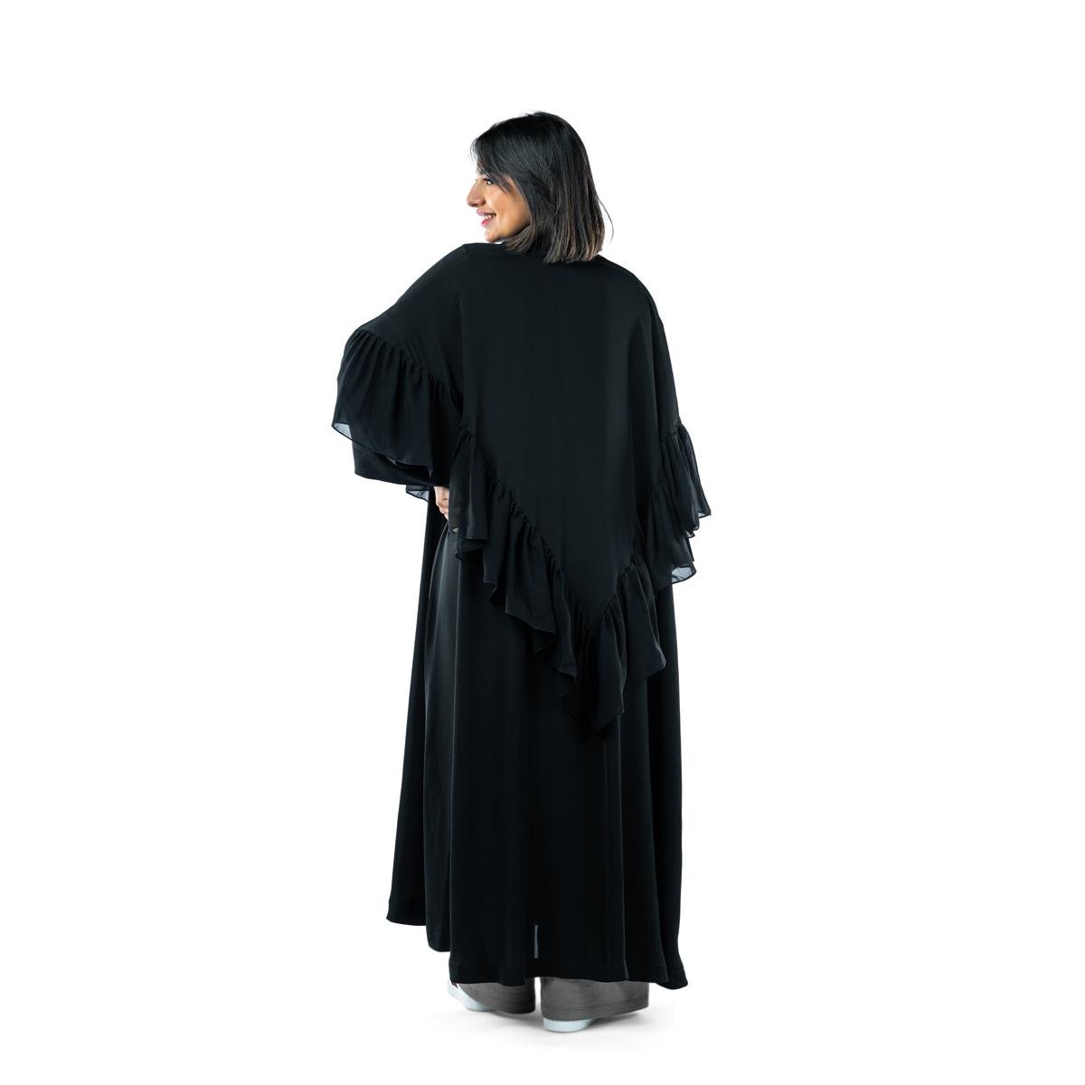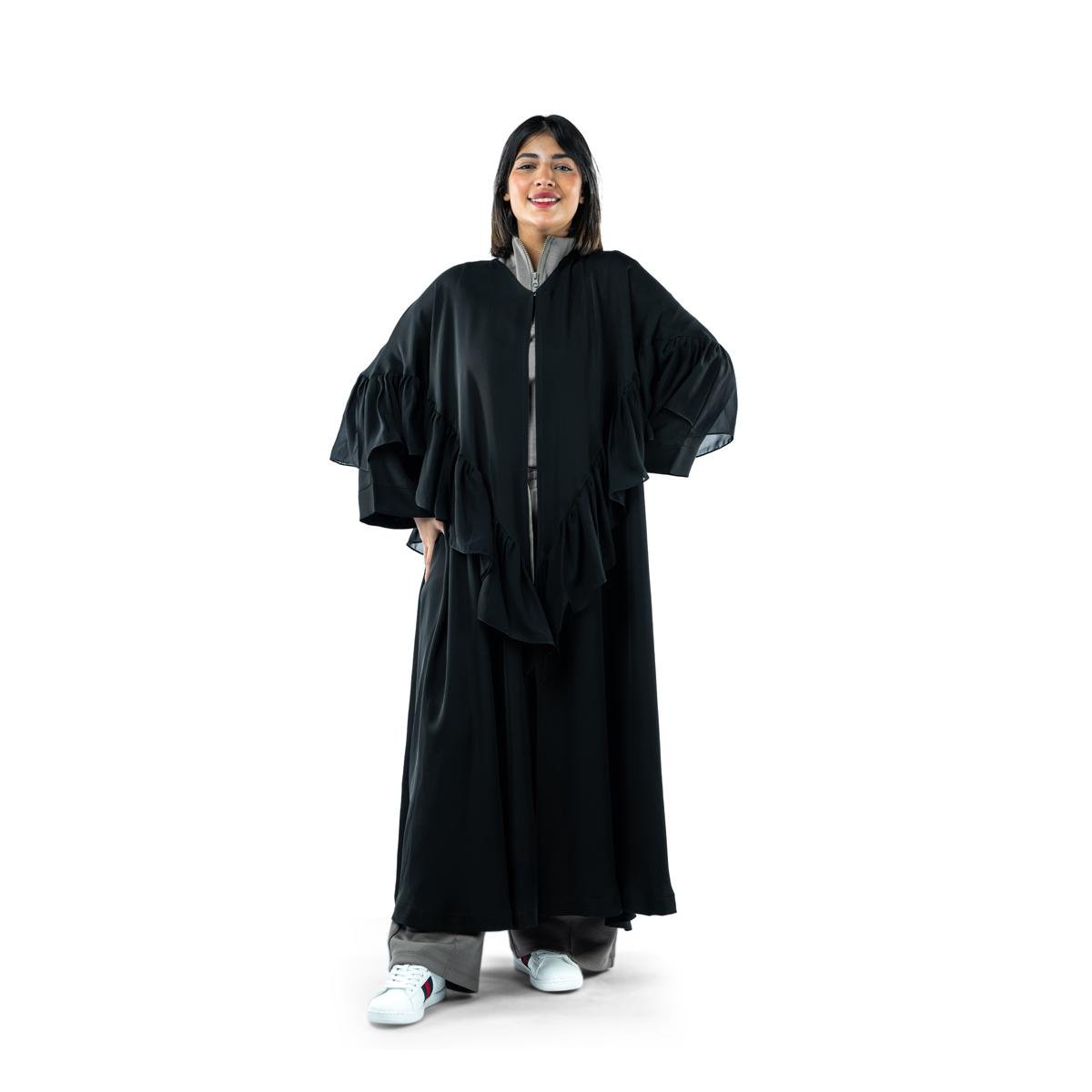 أضيفي لمسة من الفخامة إلى إطلالتك مع هذه العباية الرائعة المزينة بالكشكشة، التي تجمع بين الأناقة والرقي بكل انسيابية. يتميز ت، مما يمنحك مظهرا ملكيا ساحرا. مصنوعة من قماش ناعم وخفيف يضمن الراحة طوال اليوم، مما يجعلها مثالية للمناسبات الخاصة أو لإضافة لمسة راقية إلى إطلالتك اليومية.