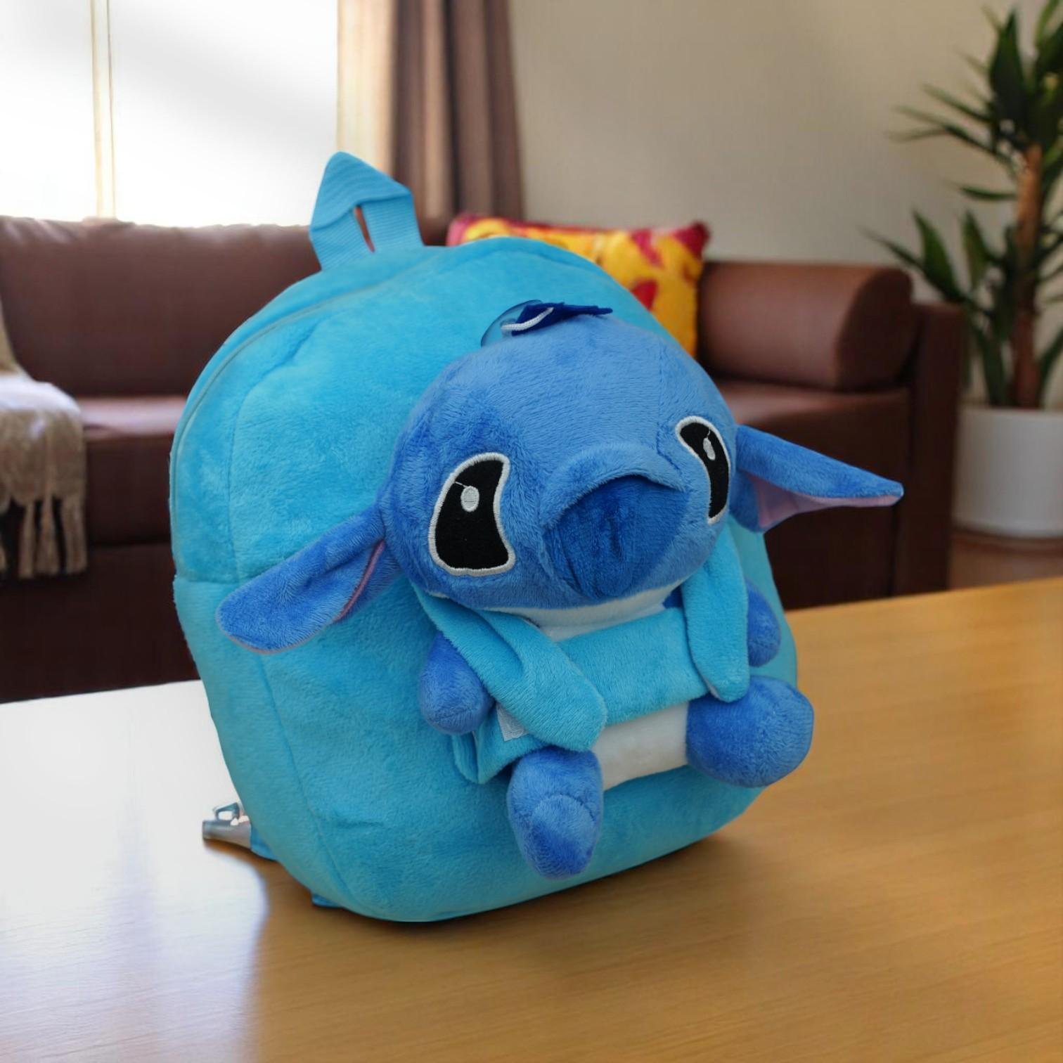 حقيبة ظهر قطيفة مصنوعة من قماش قطيفة فائق النعومة، وتتميز بتصميم شخصية ستيتش مع تفاصيل لعبة ثلاثية الأبعاد تضفي لمسة من الحيوية يحبها الأطفال.