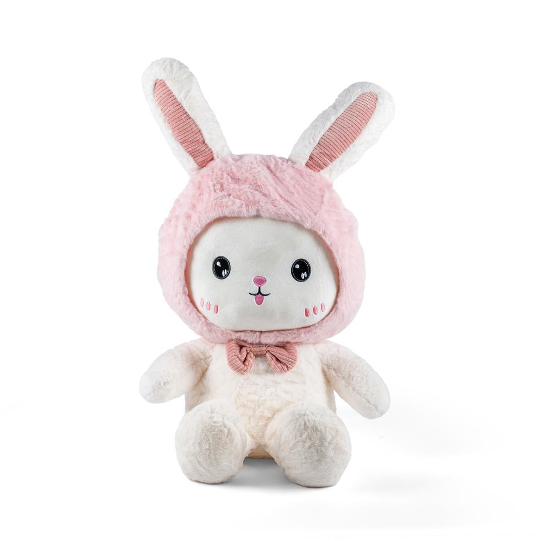 الراحة واللطف في أحضان هذا الأرنب الساحر مثالي للأطفال والكبار على حد سواء مع لعبة الأرنب الوردي الناعم - 60 سم