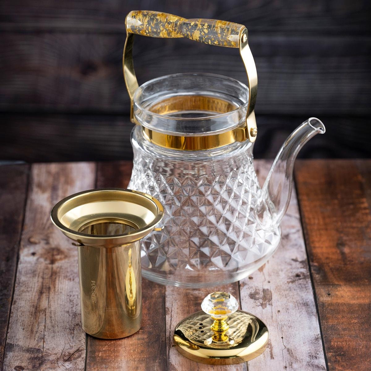 إبريق مصنوع من زجاج البورسليكات المقاوم للحرارة حتى يتحمل درجات الحرارة العالية. يأتي معه مصفاة من الستانلس ستيل تحتوي على فلتر شبكي ناعم يضمن استخلاصًا سلسًا للنكهة، مناسب لأوراق الشاي السائبة. يتميز بمقبض مصنوع من الستانلس ستيل بقبضة ثابتة ومقاومة للحرارة لسكب آمن ومريح.