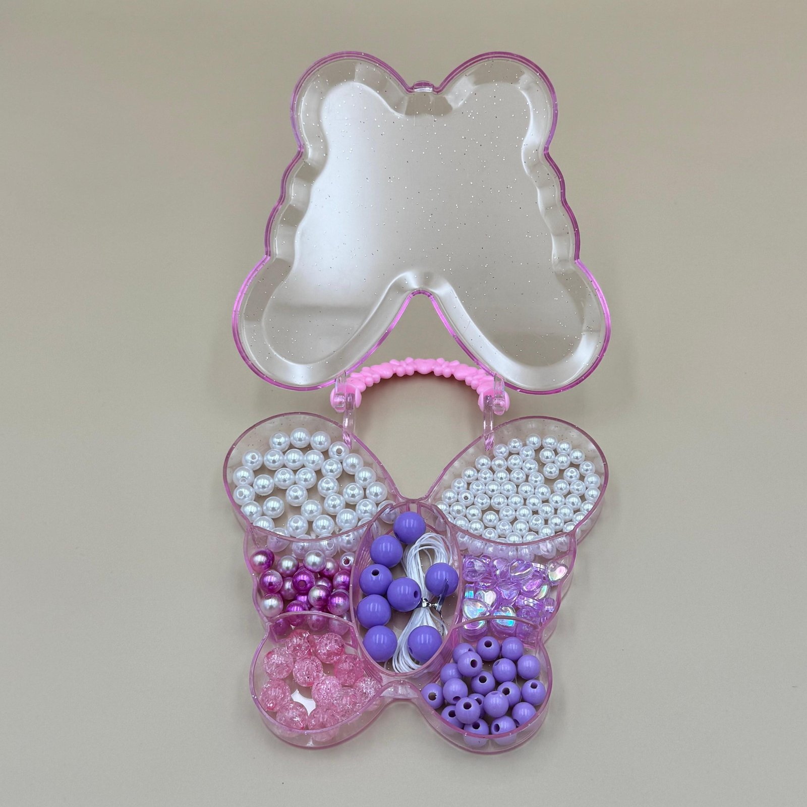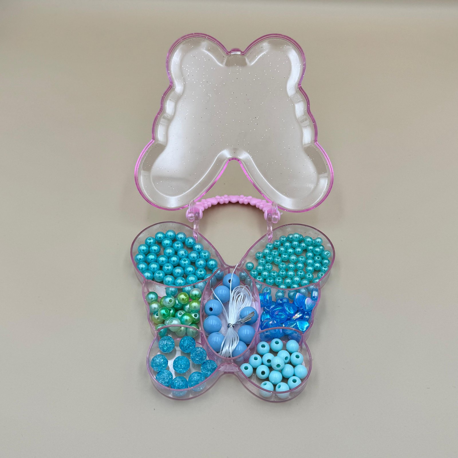 افتح الباب لعالم الإبداع مع طقم خرز DIY المزود بتعليقات على شكل فراشات. هذا الطقم المميز يحتوي على كل ما تحتاجه لصنع أساور، عقود، ميداليات مفاتيح والمزيد – كل ذلك بأسلوبك الخاص! مثالي للأطفال، المراهقين، وحتى الكبار الذين يعشقون الحرف اليدوية.