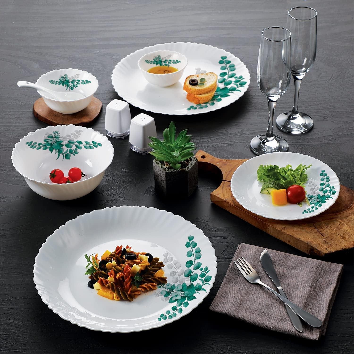 ارتقي بتجربة تناول الطعام مع طقم العشاء الفاخر سيلو 50 قطعة - أوراق أكوا. يتميز الطقم بتصميم أنيق بزخارف أوراق أكوا الهادئة التي تضفي لمسة راقية على كل وجبة. سواء كنت تستضيف حفلة عشاء فخمة أو تتناول وجبة عائلية دافئة، فإن هذا الطقم سيجعل كل مناسبة مميزة.