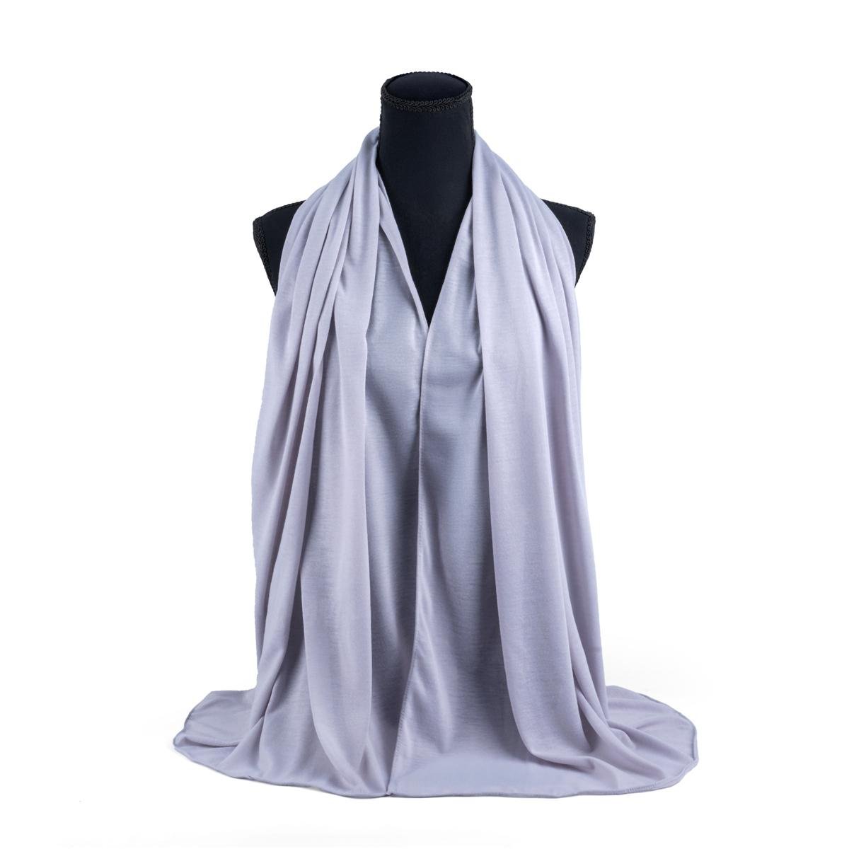 أضيفي لمسة من الرقي إلى إطلالتك اليومية بهذا الشال الأنيق مع شيلة شيفون مع قطن بحواف مخيطة بدقة - رمادي فاتح