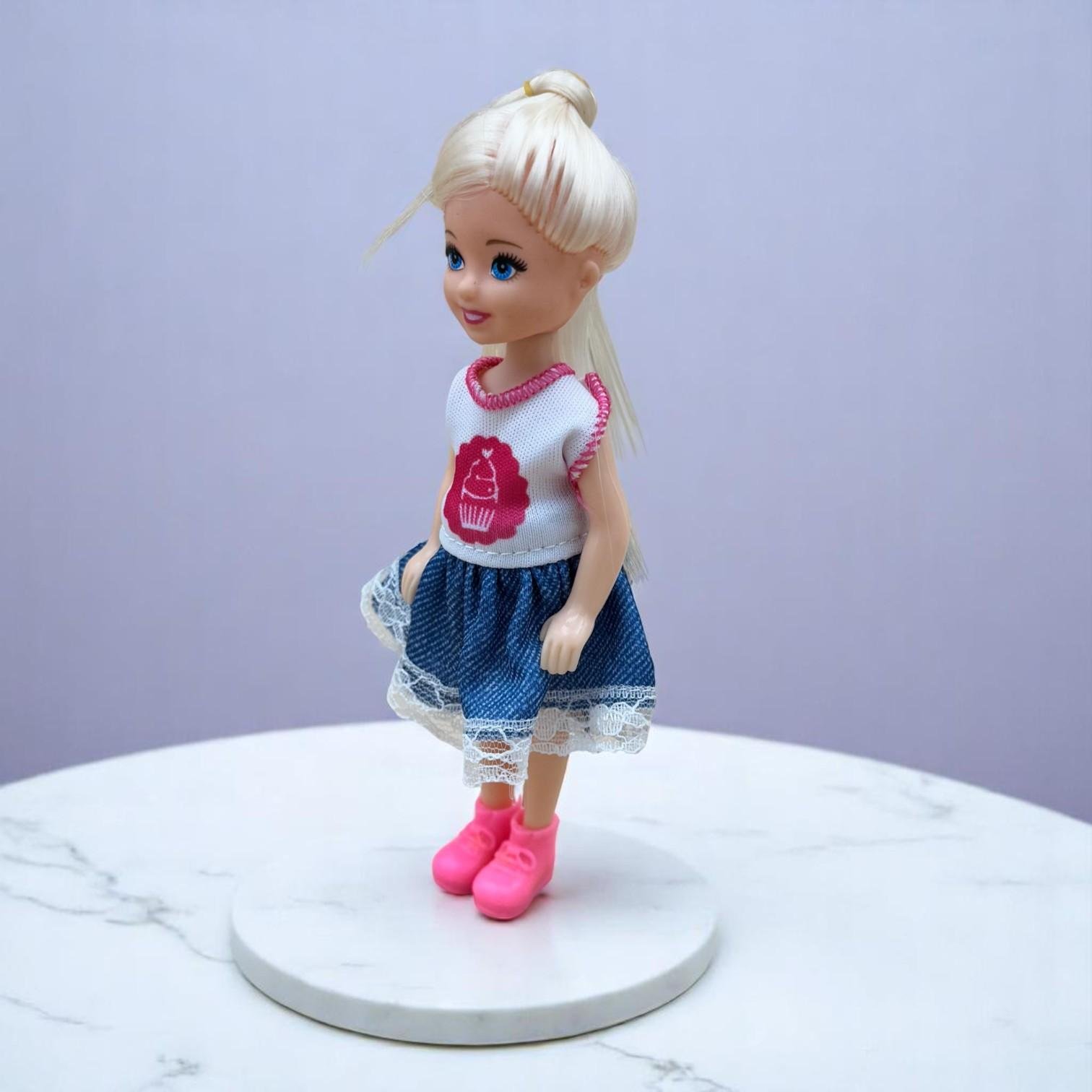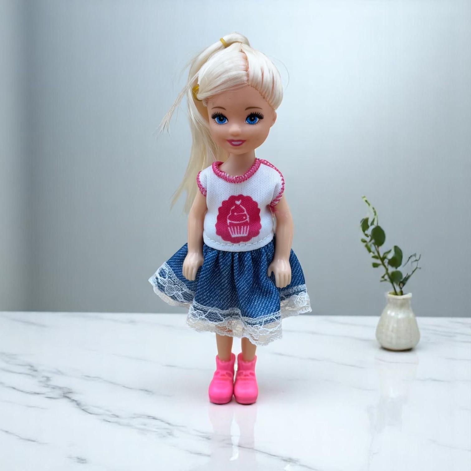 دللوا أطفالكم بأروع إطلالة لدماهم، لا يوجد أجمل من التنورة الدنيم والحذاء