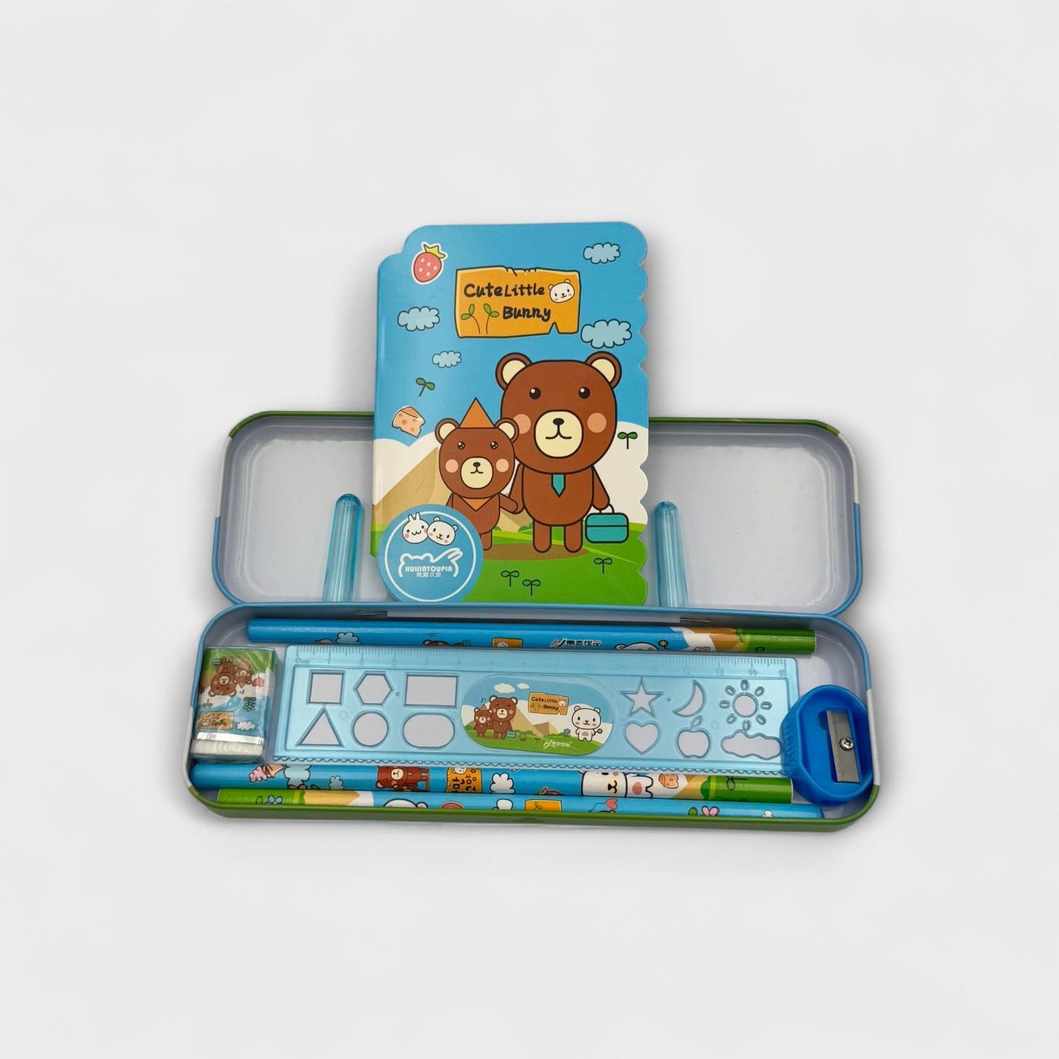طقم الأدوات المكتبية المدرسية بتصميم الدب اللطيف هو مجموعة شاملة من المستلزمات الأساسية للدراسة، كلها مزينة برسومات دب ظريف تضفي لمسة ممتعة وتشجع الأطفال على حب التعلم.