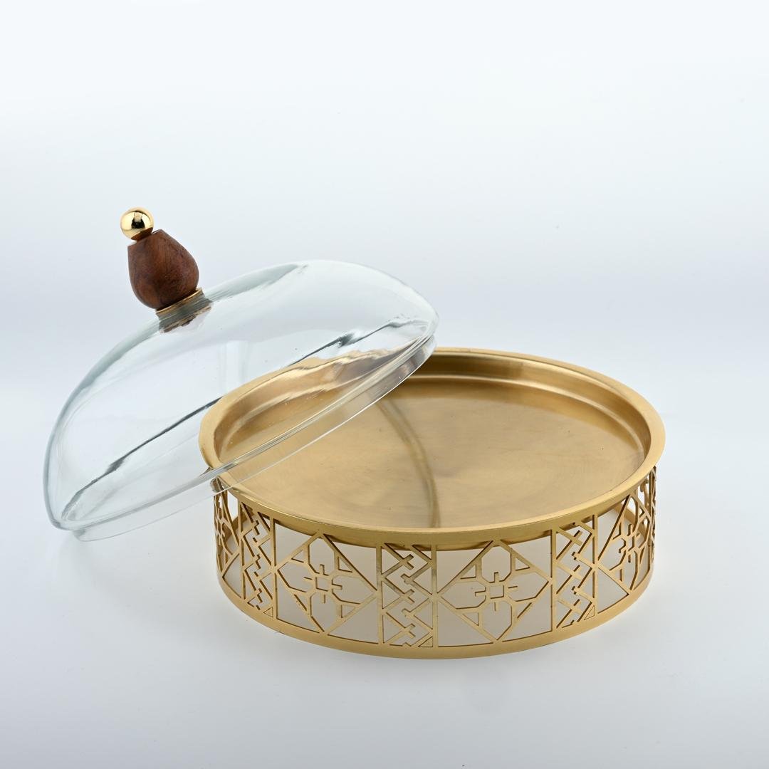 "أضف لمسة من الأناقة والسحر إلى مائدتك مع طبق التقديم المزخرف بغطاء أكريليك - الخيار المثالي لكل مناسبة."
