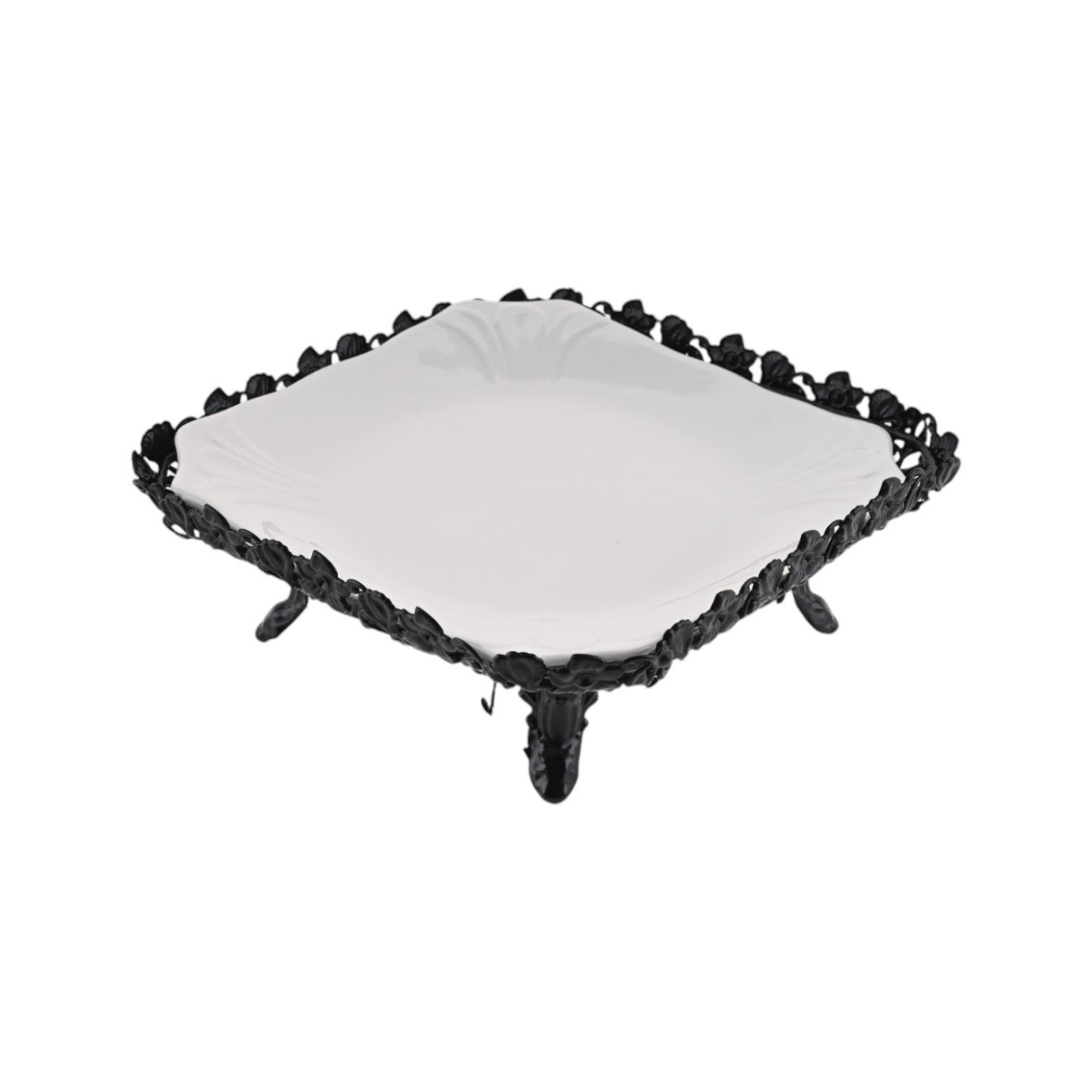 Dimensions: Diameter 30 cm, Height 10 cm Color: Black holder with white plate