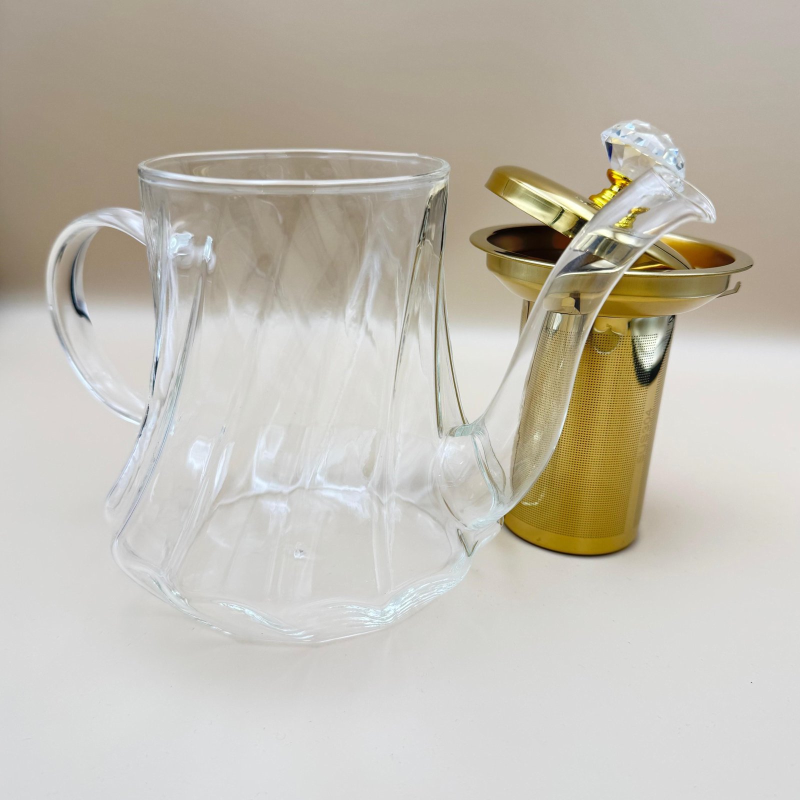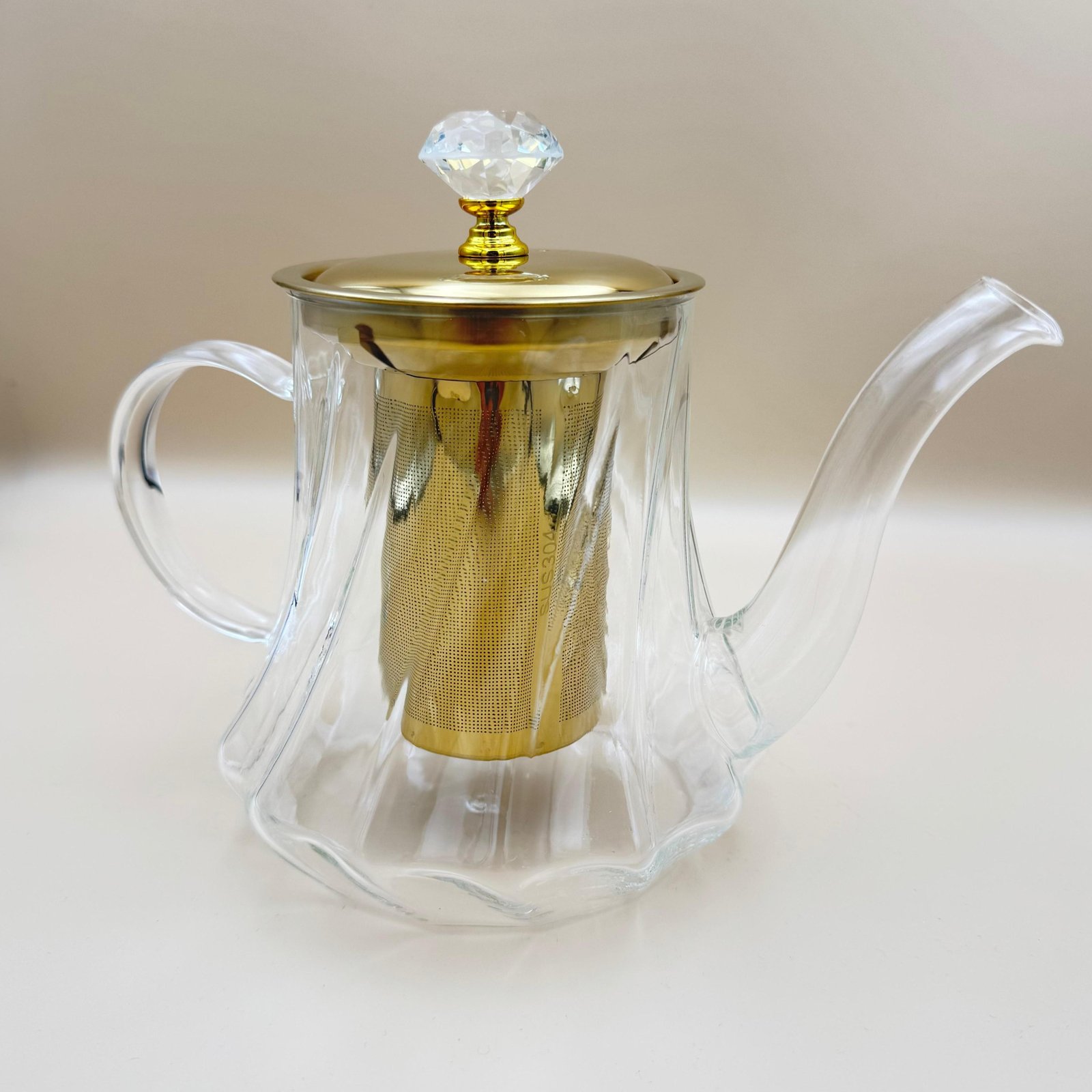 استمتعي بتحضير الشاي بأناقة لا تقاوم مع إبريق شاي زجاجي بمقبض ماسي مع مصفاة ذهبية