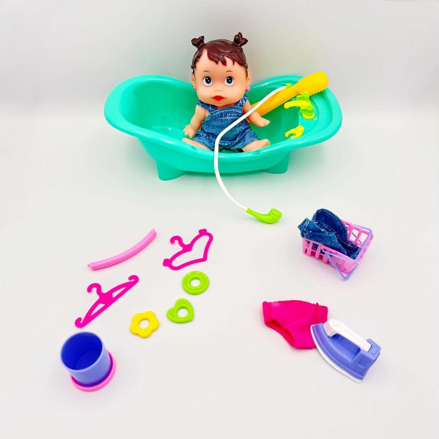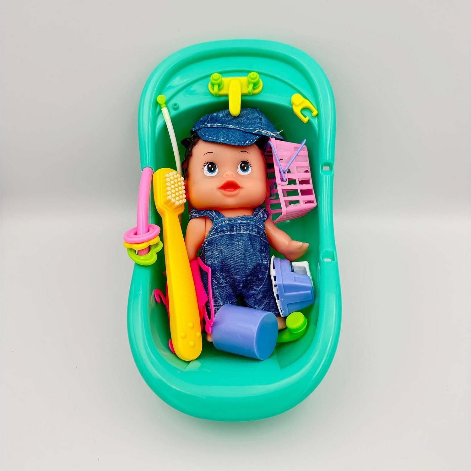 حوّل وقت الاستحمام إلى عالم من الإبداع واللعب التخيلي مع مجموعة اللعب دمية مع حوض استحمام وإكسسوارات. تتميز هذه المجموعة الرائعة بدمية ترتدي ملابس جينز، حوض استحمام أزرق مبهج، بالإضافة إلى مجموعة من الإكسسوارات الأساسية مثل رأس الدش، موزع الصابون، ودلو اللعب. مع تقديم كل ما يحتاجه الطفل للمرح والخيال، تعد هذه المجموعة مثالية لتطوير مهاراتهم الحركية وتعزيز اللعب التخيلي. سواء كهدية أو إضافة ممتعة لوقت اللعب اليومي، تضمن هذه المجموعة لحظات من الفرح والخيال بلا حدود