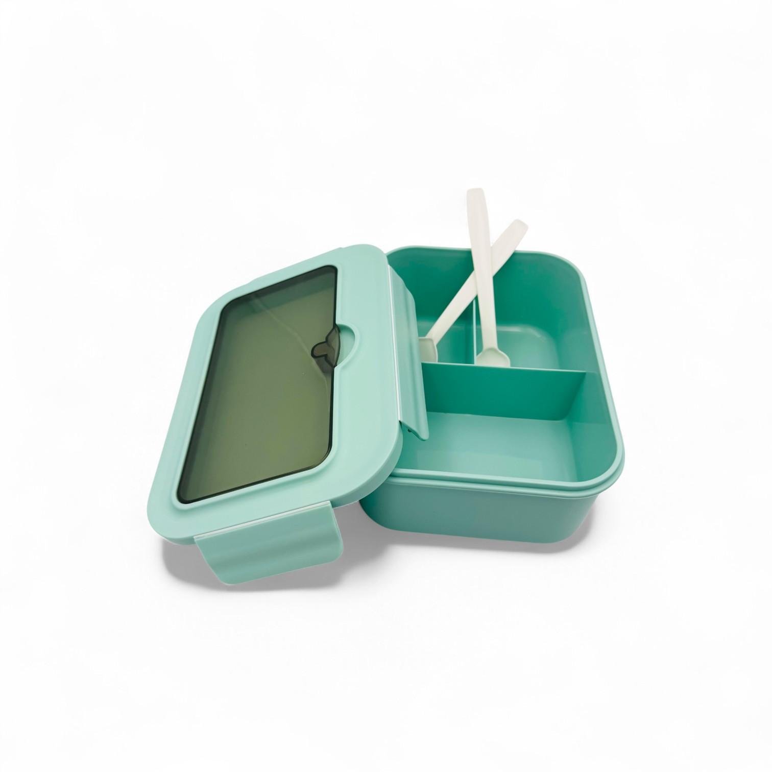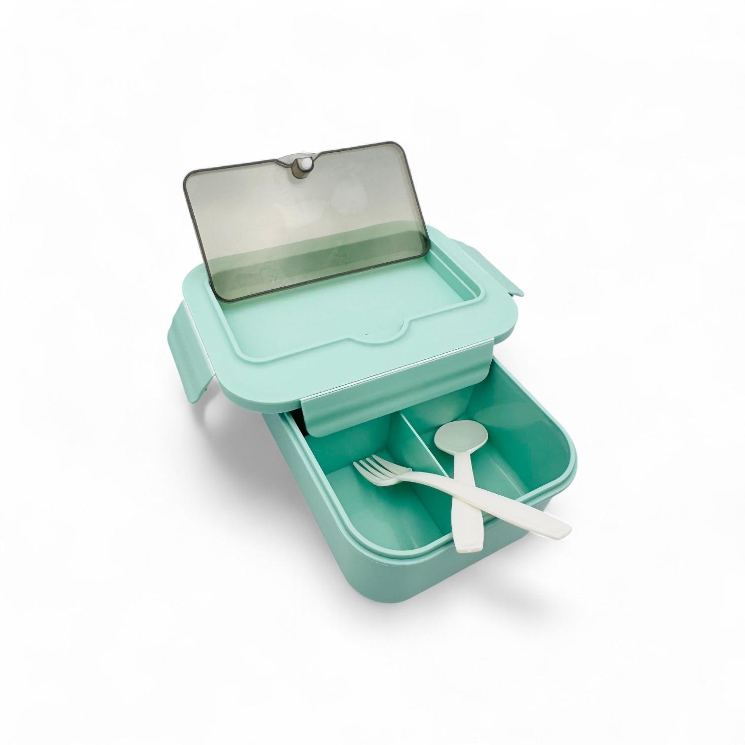 لانش بوكس مصنوع من مواد آمنة للطعام وخالية من BPA. يتكون من طبقتين منفصلتين لتخزين أكثر من نوع من الطعام دون اختلاط النكهات، بالإضافة إلى مكان مخصص للأدوات (ملعقة وشوكة) لسهولة الاستخدام في أي وقت.