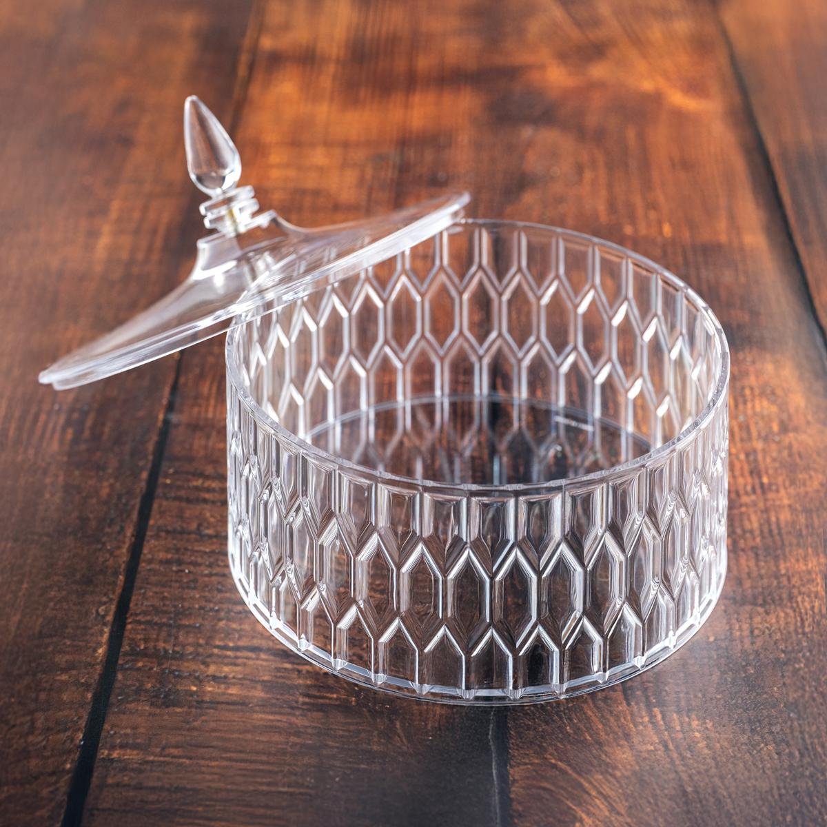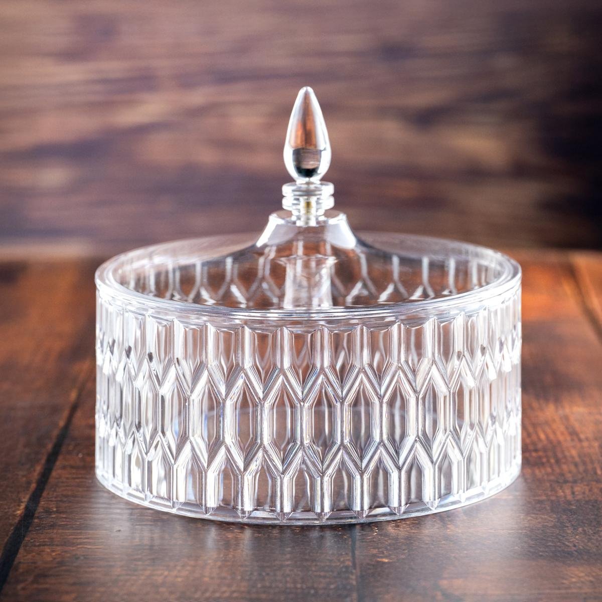 نقدم لكم طبق الحلوى الكريستالي الفاخر بغطاء آمن مزخرف – مزيج مثالي من الأناقة والعصريه لمنزلك. هذا الطبق الرائع المصنوع من كريستال عالي الجودة يضيف لمسة من الأناقة لأي مناسبة سواء كانت تجمع غير رسمي أو مناسبة رسمية. الغطاء المزخرف الآمن يحافظ على الحلوى طازجة ومحميّة.