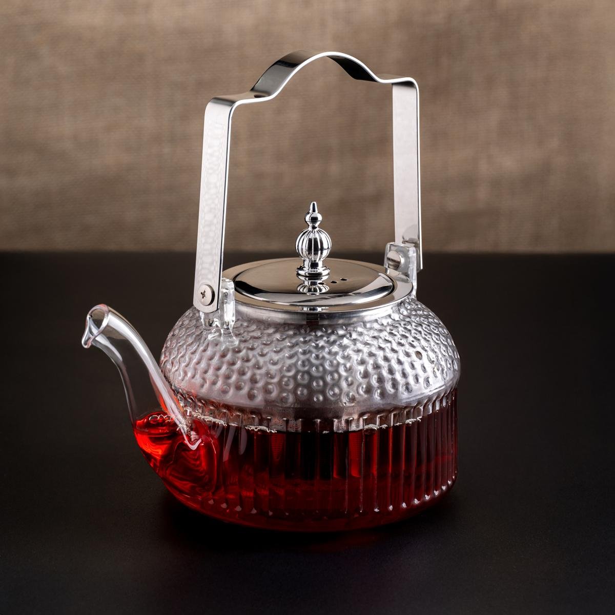 استمتعي بتحضير الشاي بأسلوب أنيق مع إبريق الشاي الزجاجي الفاخر، المصمم ليجمع بين الجمال والاناقه. يحتوي على مصفاة ومقبض من الستانلس ستيل، مما يضمن لك تحضير شاي نقي بدون أي شوائب. هيكله المصنوع من الزجاج المقاوم للحرارة يسمح لك بمشاهدة الشاي وهو ينقع ليصل إلى القوام المثالي، بينما يمنحك المقبض المريح تحكمًا سهلاً وآمنًا. مثالي للاستخدام اليومي، أو لجلسات الشاي المميزة مع العائلة والأصدقاء.