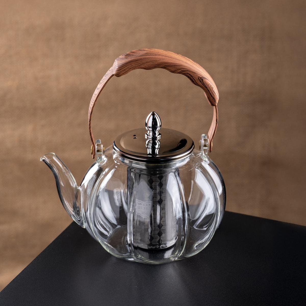 إبريق شاي زجاجي أنيق مع مقبض خشبي ومصفاة ستانلس ستيل مثالي لعشاق الشاي تخمير شايك المفضل بأناقة مع إبريق الشاي الزجاجي الأنيق مع مقبض خشبي ومصفاة ستانلس ستيل. مصمم ليحقق الاناقه والجمال في آن واحد، هذا الإبريق يسمح لك بمشاهدة أوراق الشاي وهي تنتشر أثناء التخمير، مما يخلق تجربة ساحرة. المقبض الخشبي يضيف لمسة من الدفء الطبيعي، بينما تضمن المصفاة المصنوعة من الستانلس ستيل تخميرًا مثاليًا في كل مرة.