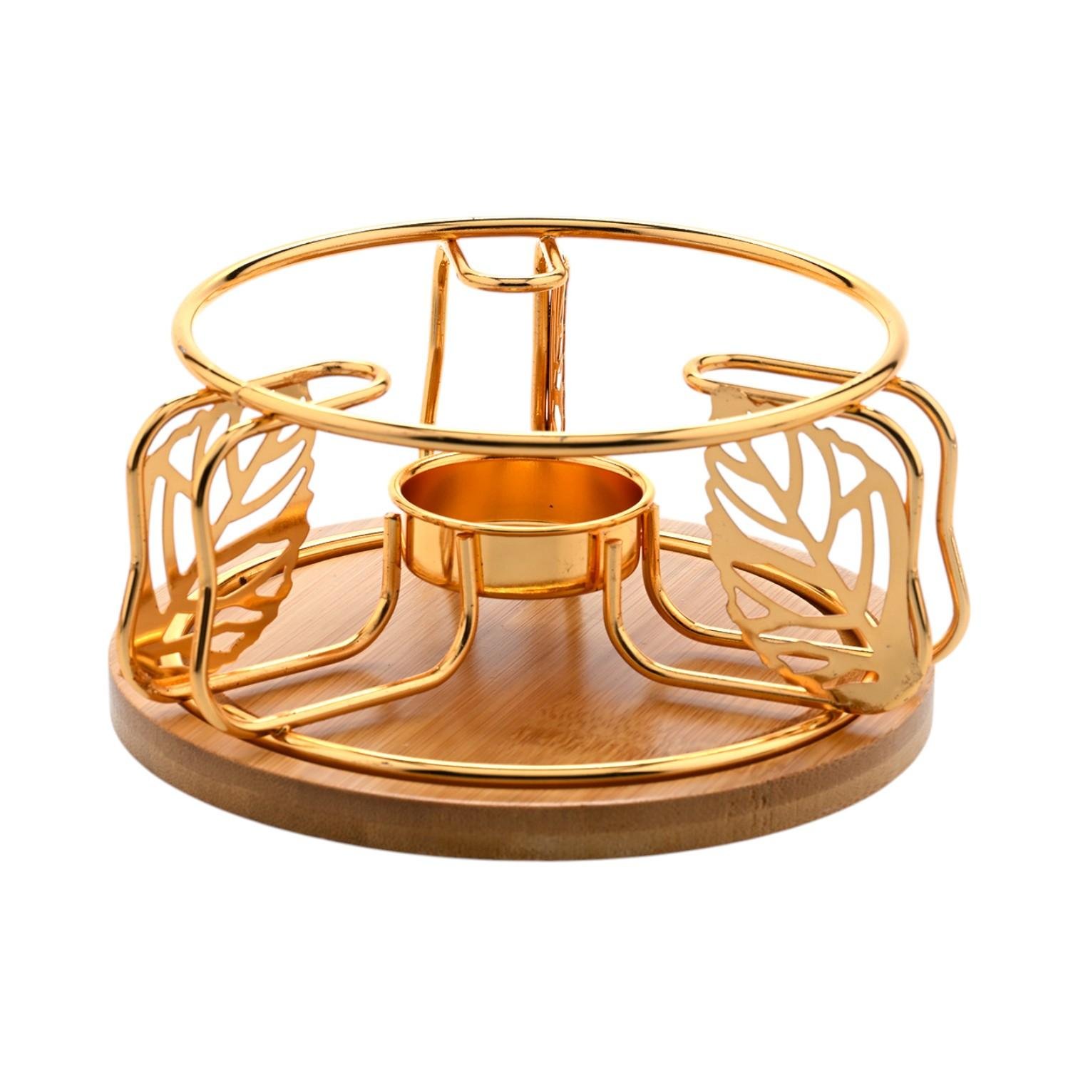 أضف لمسة من الأناقة إلى مساحتك باستخدام حامل الشموع بأوراق ذهبية. يتميز هذا القطعة المصممة بشكل جميل بالوظائف والتصميم الفني، مما يجعله إضافة مثالية لأي ديكور منزلي