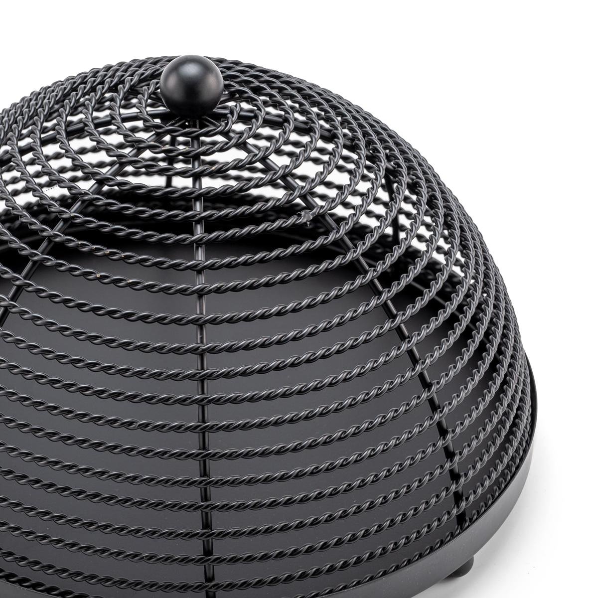 يتميز هذا الغطاء المصنوع بدقة بتصميم معدني أسود أنيق يضيف لمسة من الرقي إلى طاولتك ويحافظ على طعامك محميًا من العناصر غير المرغوب فيها. يضمن الشكل القبة مساحة واسعة لمختلف الأطباق، بينما توفر الصينية القوية قاعدة مستقرة للتقديم.