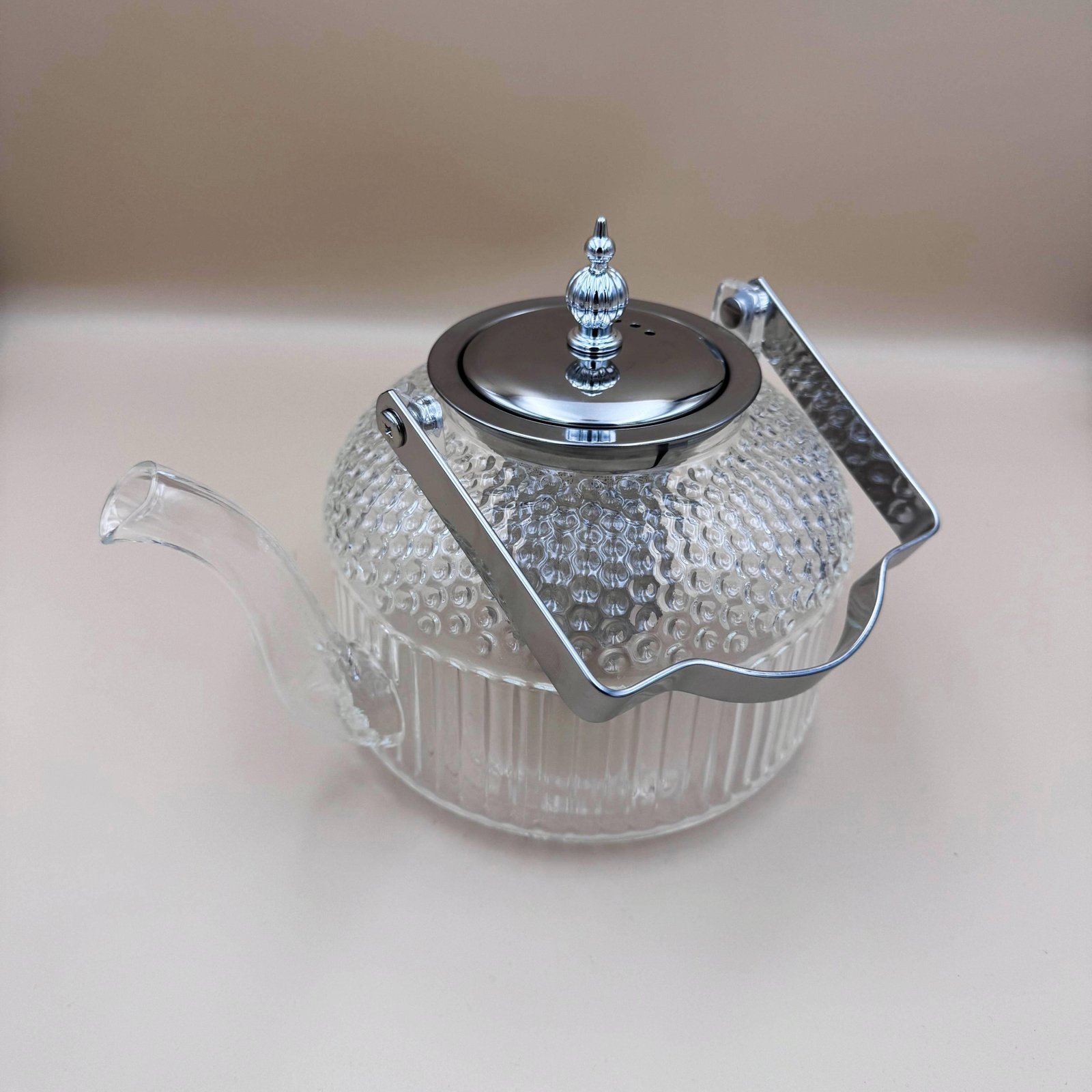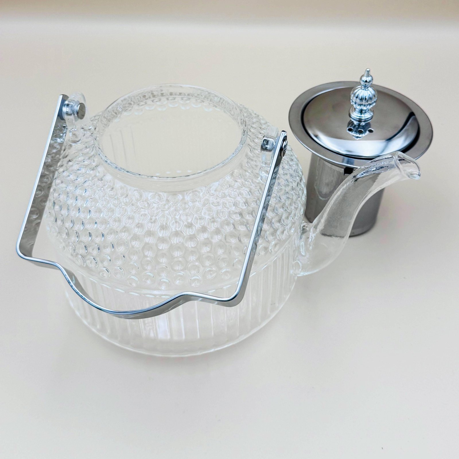 استمتعي بلحظات من الرفاهية مع كل رشفة مع إبريق شاي زجاجي مزركش بغطاء ستانلس ستيل ومصفاة