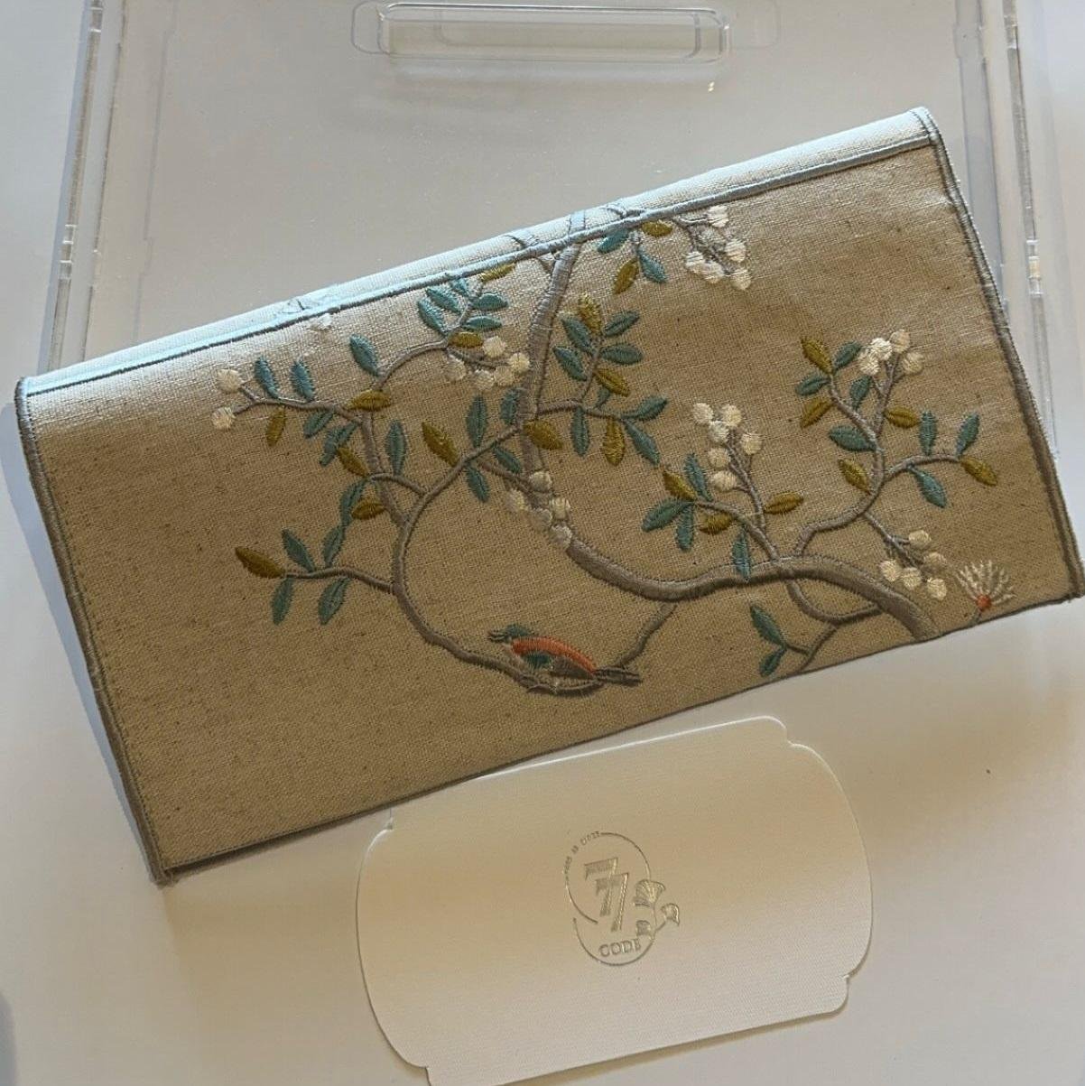 ظرف القماش المطرز مصنوع من قماش عالي الجودة، ويتميز بتطريز متقن لأغصان رقيقة تتناغم معها الطيور في مشهد بديع مستوحى من الحدائق الهادئة.يتميز بغطاء محكم الإغلاق لحماية محتوياته مع تعزيز عرضها بأسلوب راقٍ. سواء لاستخدامه كـ محفظة مجوهرات، ظرف للهدايا، أو حامل للذكريات الخاصة.