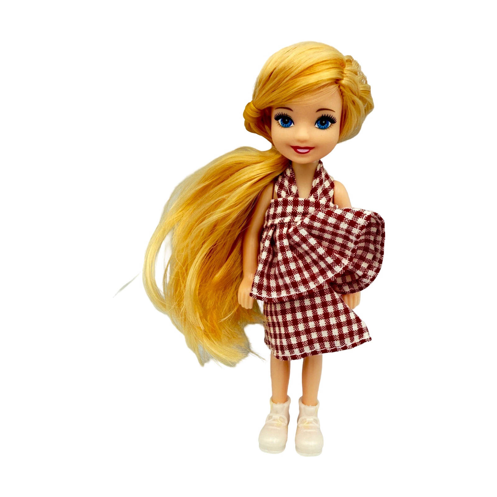 تعد الدمية الصغيرة الأنيقة الرفيق المثالي لمغامرات اللعب الأنيقة. تتميز بشعر أشقر طويل ومتدفق، وترتدي فستانًا عصريًا بنمط مربعات حمراء مع حذاء أبيض أنيق، تضيف هذه الدمية الساحرة لمسة من الأناقة لأي مجموعة ألعاب للأطفال. حجمها الصغير يجعلها مثالية للعب أثناء التنقل، مما يضمن أوقات ممتعة في أي مكان. مصنوعة من مواد عالية الجودة، صُممت هذه الدمية لتحفيز الإبداع واللعب التخيلي مع توفير المتانة والجاذبية.