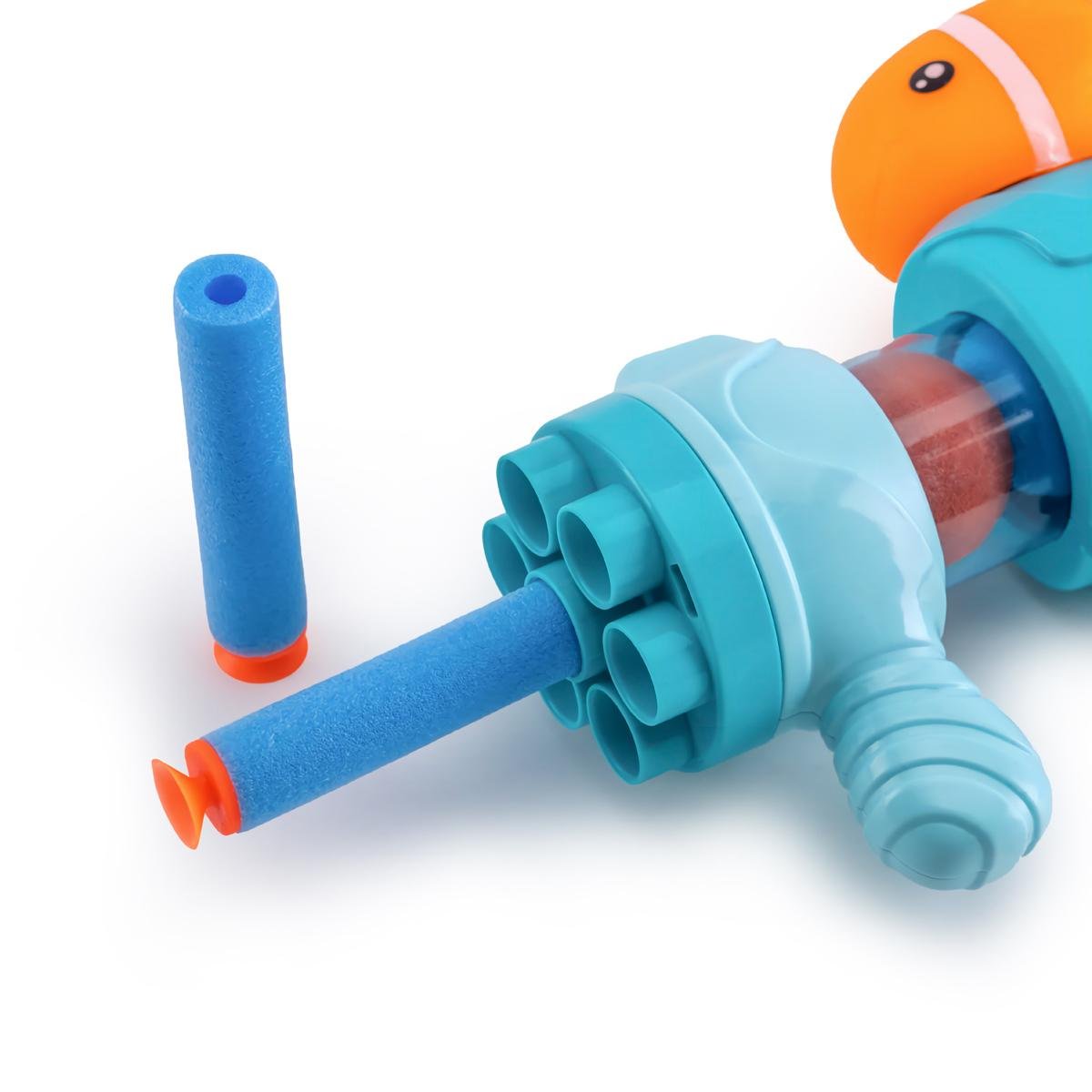 مسدس رائع بتصميم مرح جاهز للمغامرات مع مسدس رماية الفوم بتصميم السمكة.