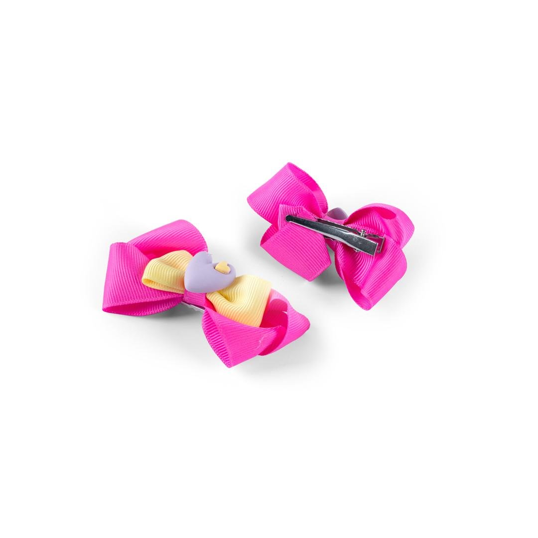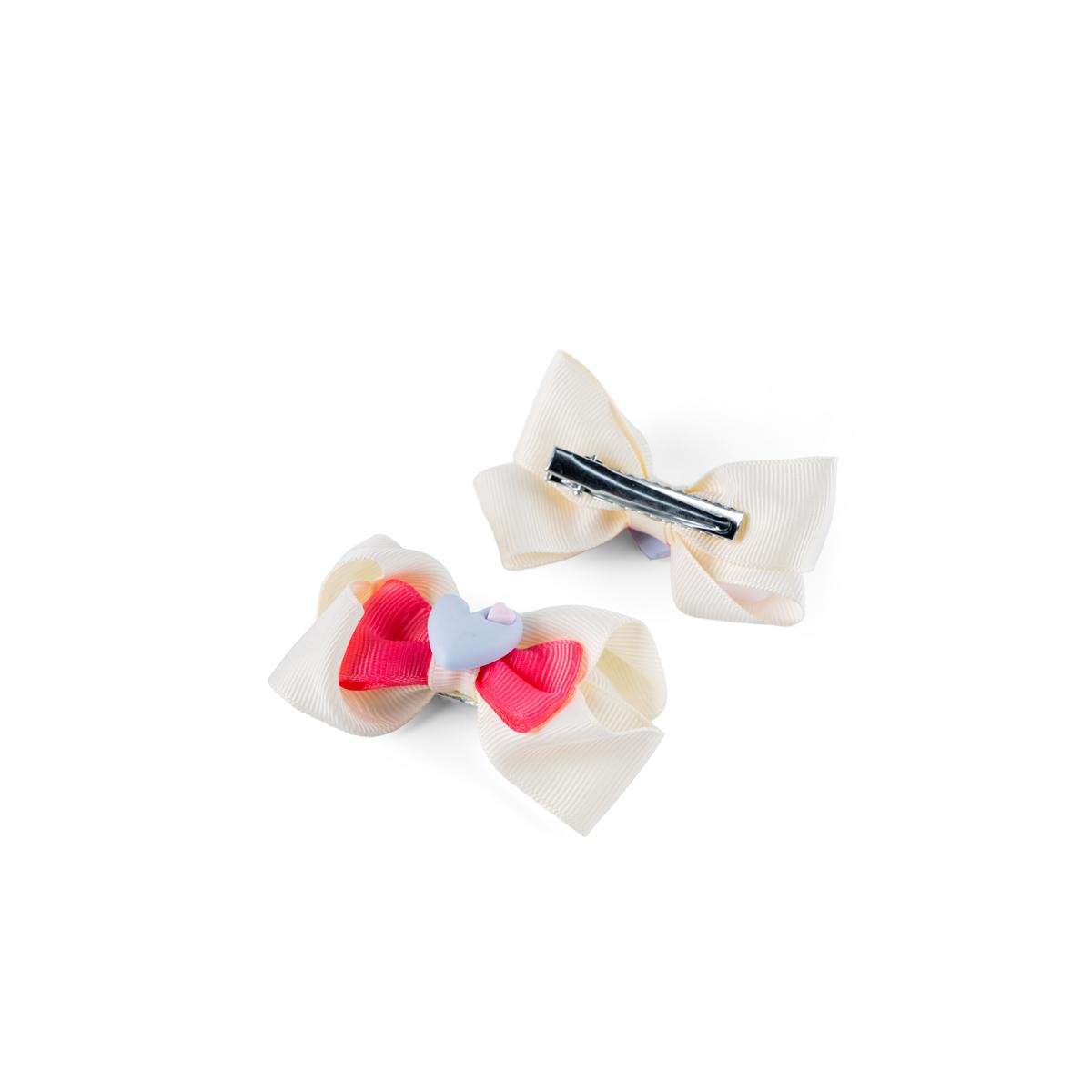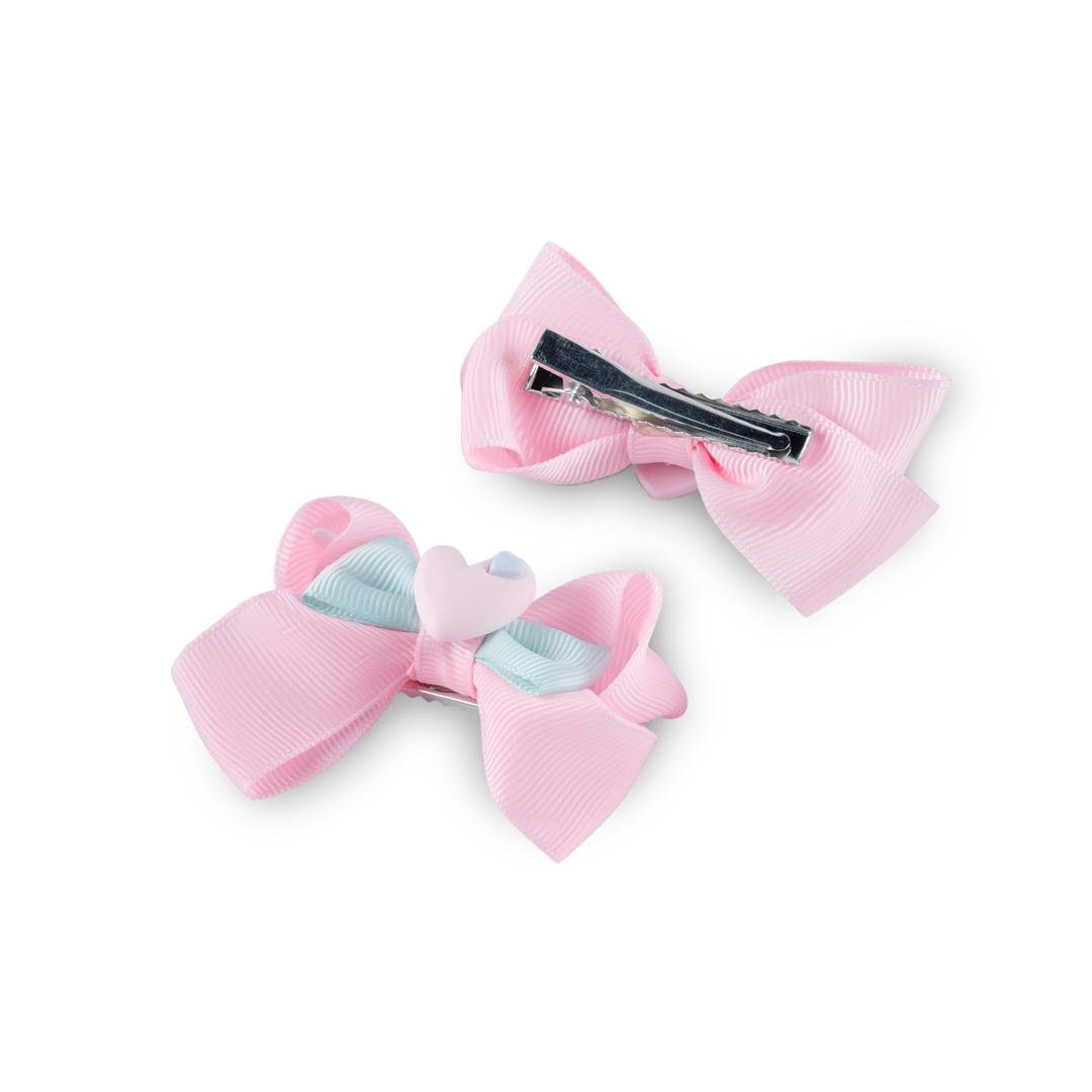 أضيفي لمسة من الأناقة لإطلالة صغيرتك إكسسوار عملي وأنيق في آن واحد مع مشبك شعر للبنات بتصميم فيونكة مزدوجة مع شكل قلب