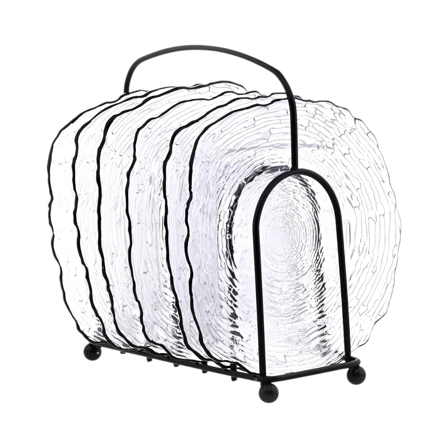طقم صحون تقديم زجاج مع ستاند - حامل صحون 6 صحون تقديم بحافه مزخرفه اضف لمسة من الأناقة إلى تجربتك الغذائية . مثالي لاستضافة الحفلات الأنيقة أو التجمعات العائلية