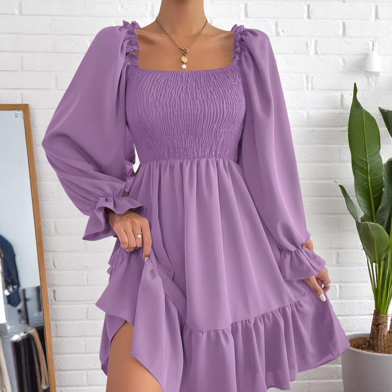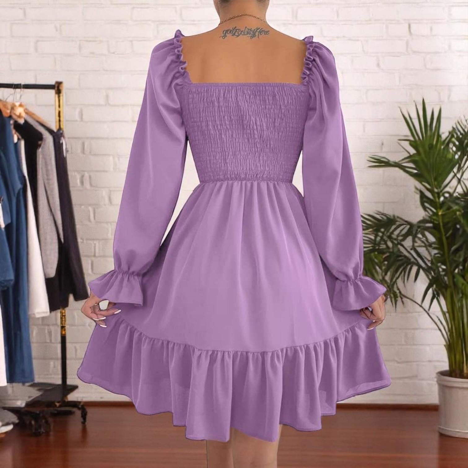 تألقي بإطلالة ناعمة وأنثوية مع فستان غريس القصير بكشكشة، المصمم بأكمام منفوخة، وصدرية سموكد مطاطية، وحافة سفلية مموجة تضيف حركة ورقي لإطلالتك.