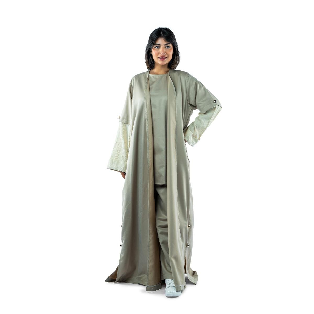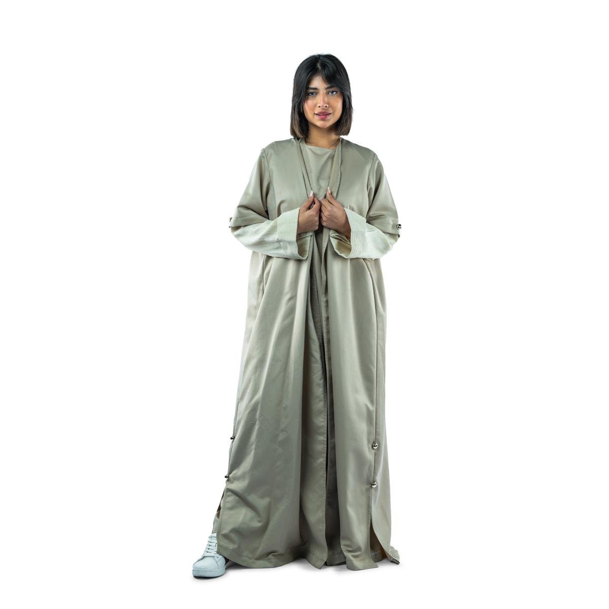 عباءة الرمال المزينة بالأزرار الرقيقة ارتقي بإطلالتك مع "عباءة الرمال المزينة بالأزرار الرقيقة". تم تصميم هذه العباءة بأناقة فائقة، مع أزرار مزخرفة على الجهة الأمامية تضيف لمسة من الرقي والجمال. القماش بلون الرمل يتدفق برشاقة، مما يمنحك إطلالة مريحة وأنيقة في آن واحد. سواء كنت تحضرين مناسبة رسمية أو تبحثين عن إضافة قطعة خالدة إلى خزانة ملابسك، فإن هذه العباءة هي الخيار المثالي.