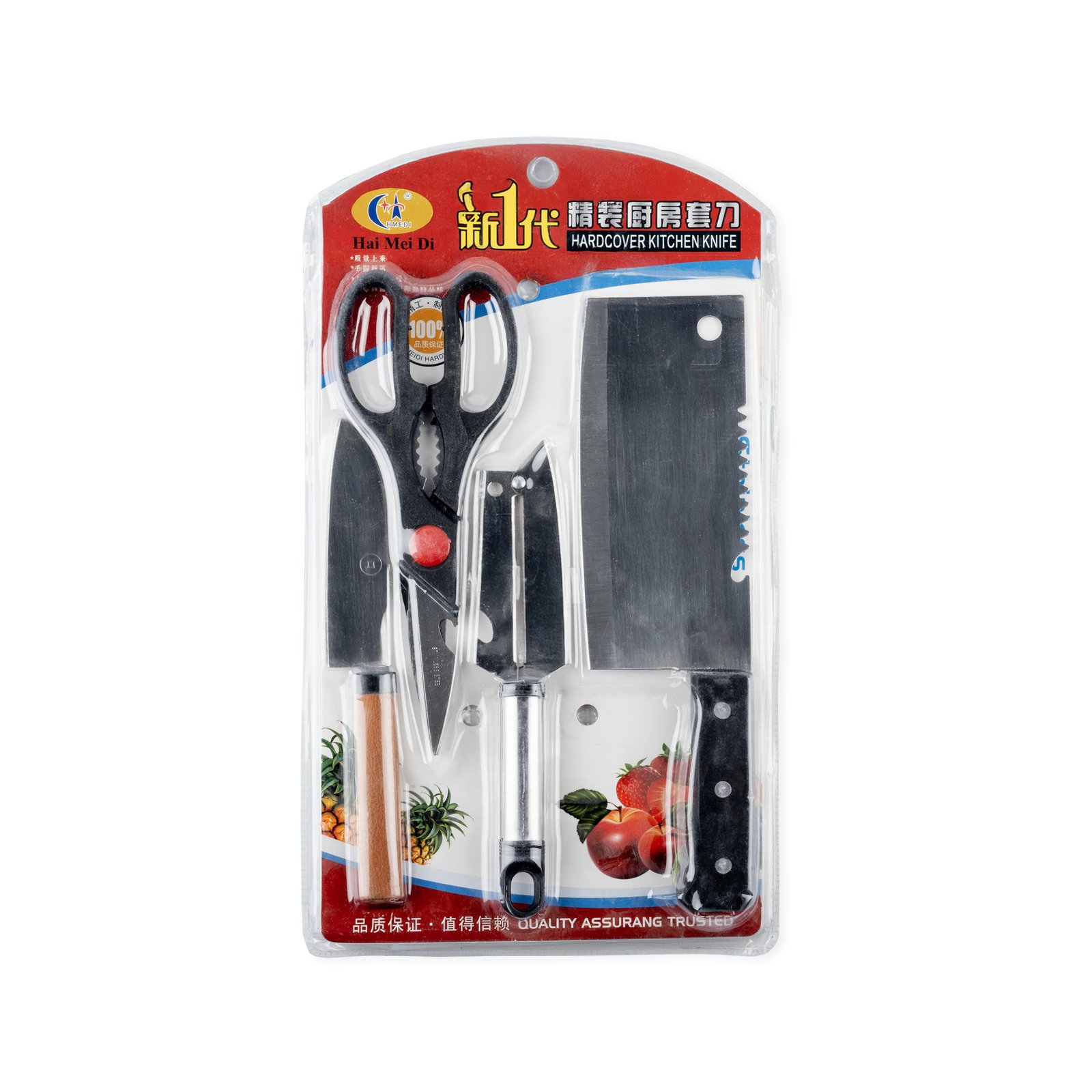 تتضمن مجموعة أدوات المطبخ ساطور، وسكين متعدد الاستخدامات، مقص مطبخ، مقشرة، ومسن سكاكين، جميعها مصنوعة من الستانليس ستيلالمقاوم للصدأ عالي الجودة لضمان المتانة والدقة. تضمن المقابض المريحة قبضة مريحة، مما يجعل تحضير الطعام سهلاً وممتعاً. مثالية للتقطيع، التقطيع إلى مكعبات، التقشير، والشحذ، هذه المجموعة المتعددة الاستخدامات ضرورية لأي مطبخ. تعليمات العناية: للحفاظ على حدة وطول عمر السكاكين، اغسلها يدوياً باستخدام منظف خفيف وجففها فوراً. استخدم المسن المرفق للحفاظ على الشفرات في أفضل حالة.
