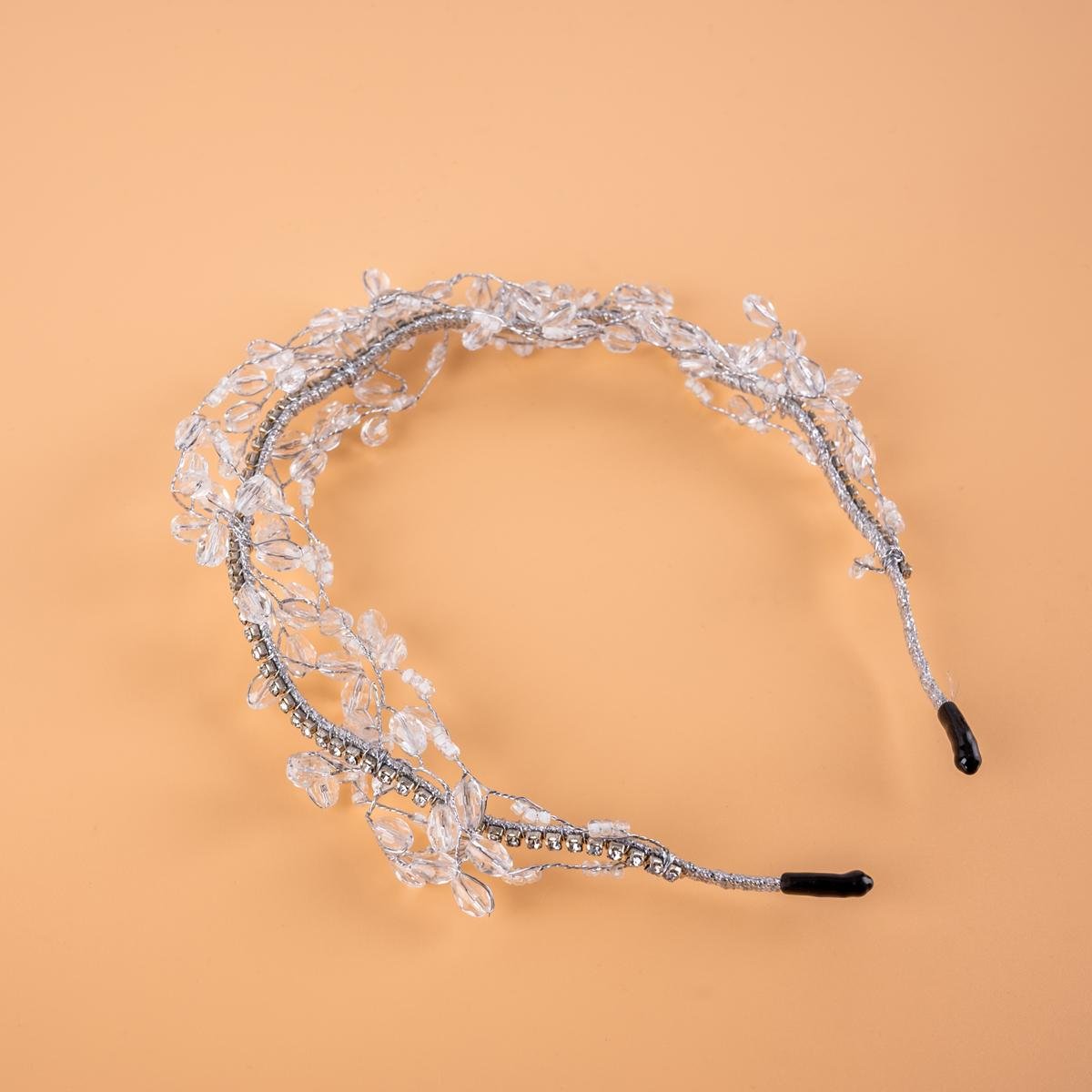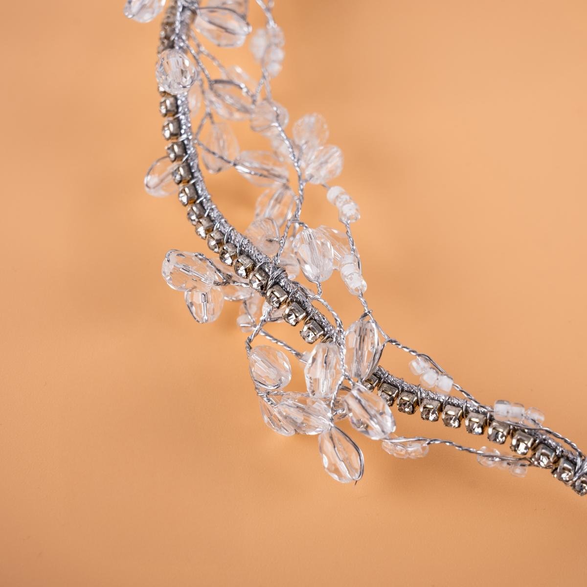 أضيفي لمسة من الأناقة إلى إطلالتك مع عصابة الرأس أناقة قطرات الندى، المصممة بدقة وفن. تتميز هذه العصابة بسلك متشابك وخرز شفاف متألق، مما يخلق تصميمًا مستوحى من قطرات الندى ليعزز جمال أي زي.