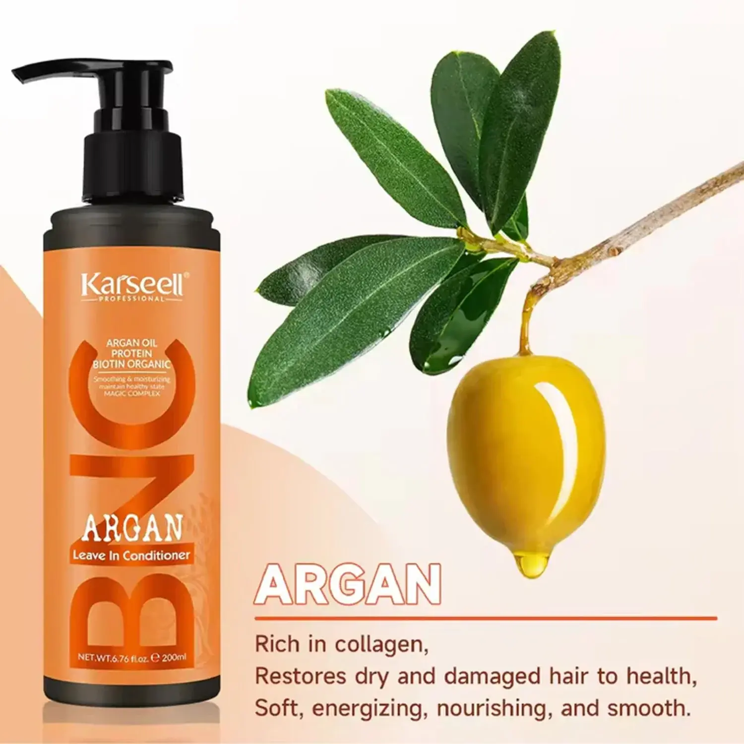 يتميز بلسم كارسيل BNC بزيت الأرجان بدون شطف بتركيبته الخفيفة، الغير دهنية، غنية بزيت الأرجان، الكولاجين، والبروتينات الطبيعية. يعمل هذا البلسم على ترطيب الشعر بعمق، تسهيل التصفيف، وحمايته من الحرارة والعوامل البيئية الضارة، مع إبقائه ناعمًا وخاليًا من التجعد طوال اليوم.