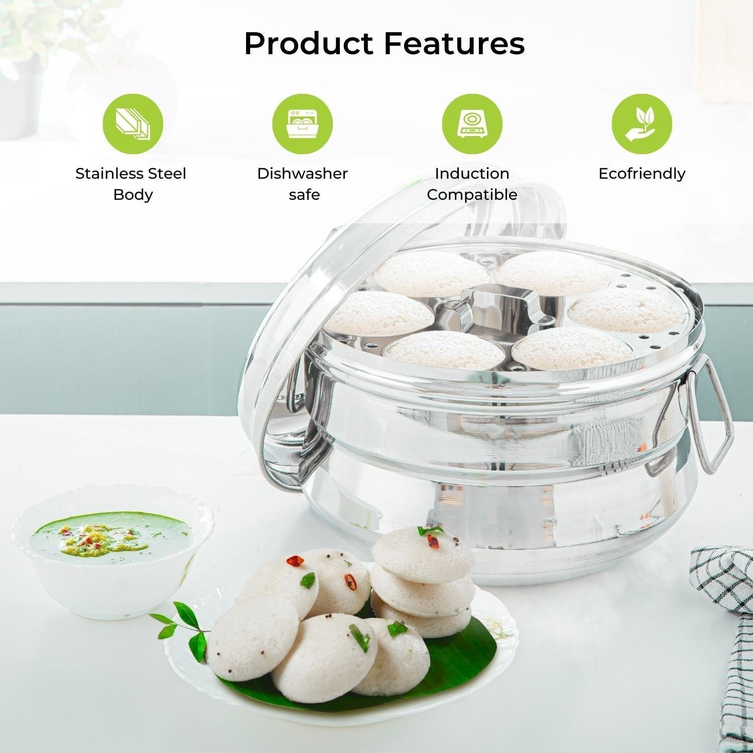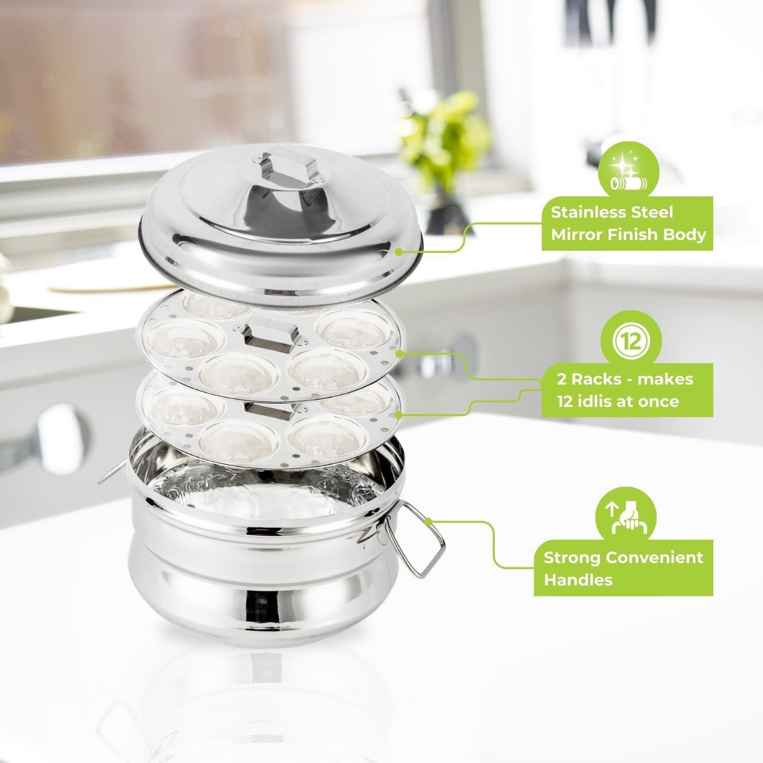 Model 2298 - 18 Inch - Includes 2 racks to make 12 idlis at once - Eco-friendly design
