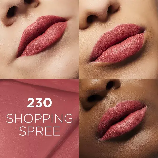 احصلي على شفاه جذابة بلون مذهل مع أحمر شفاه لوريال باريس مات ريزستنس بدرجة شوبينغ سبري 230. يتميز هذا الروج بتركيبته الفائقة الصبغة والتغطية الكاملة بلمسة نهائية غير لامعة تدوم ساعات دون تلطخ أو جفاف.