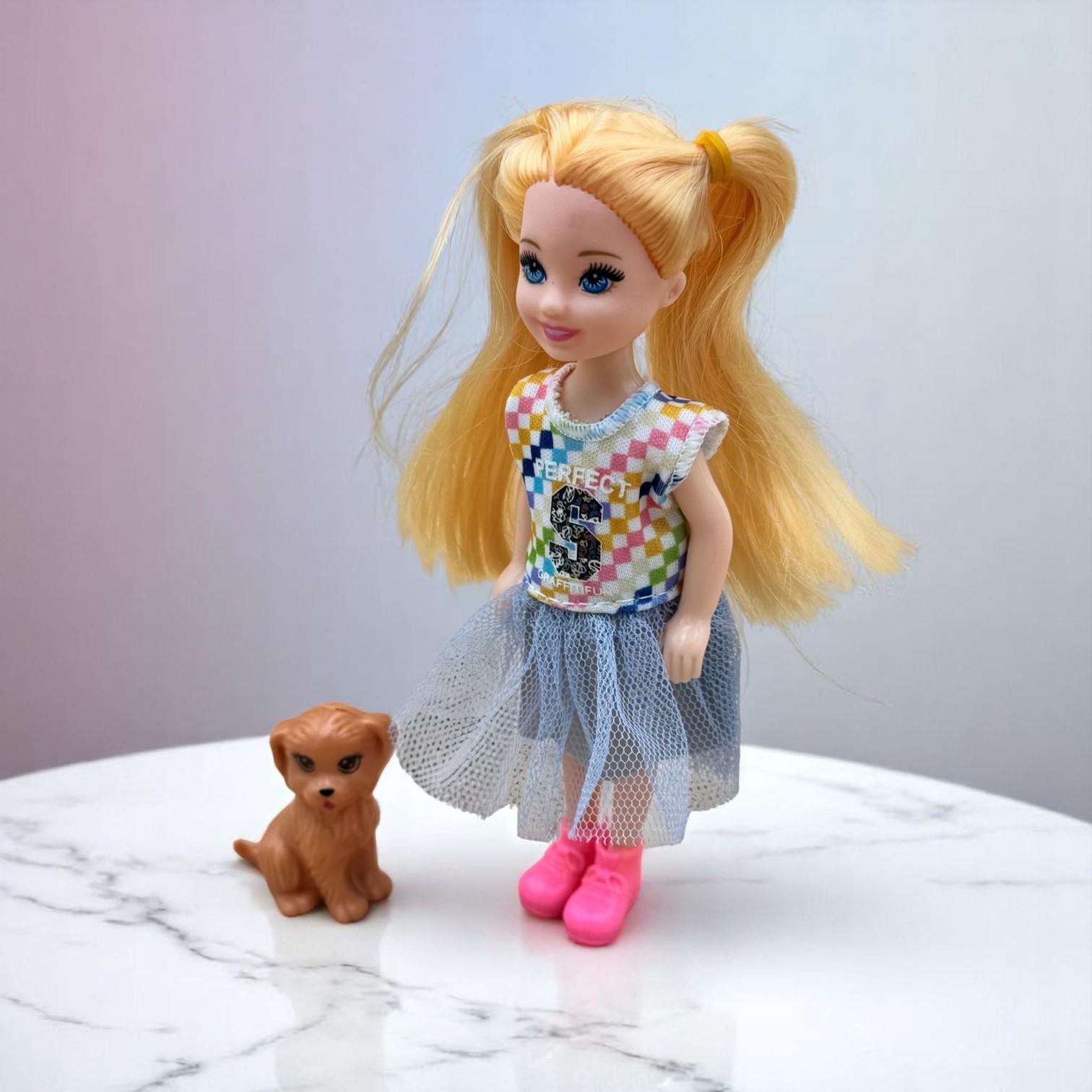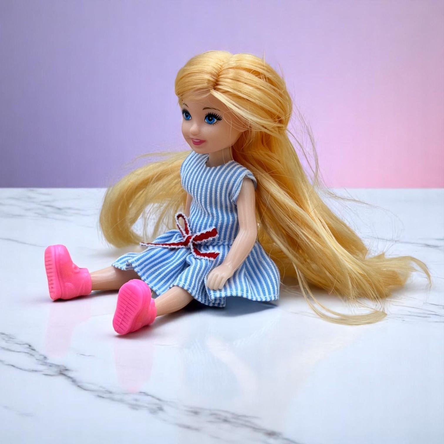 هذه الدمية الرائعة ستكون الصديقة المفضلة لطفلك تأتي بلباس أنيق مخطط بالأزرق وحذاء جميل، بالإضافة إلى قطّة صغيرة لساعات من المرح. مثالية للاحتضان، اللعب الإبداعي، أو كهدية تبهج القلب.
