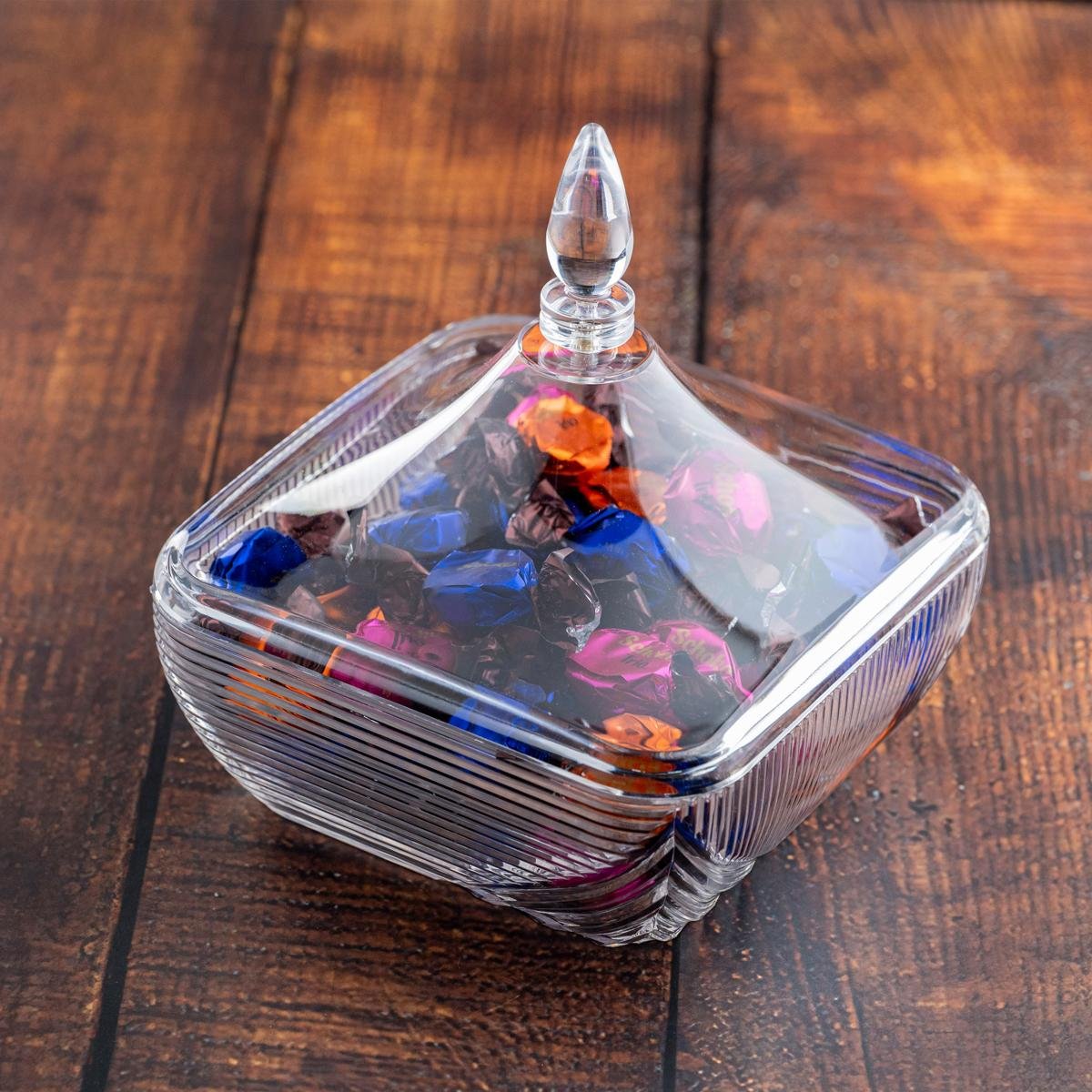 يضيف لمسة من الأناقة لديكور منزلك . مثالي لتخزين وعرض الحلويات أو المأكولات أو الأشياء الصغيرة. يتيح التصميم الشفاف رؤية المحتويات بسهولة