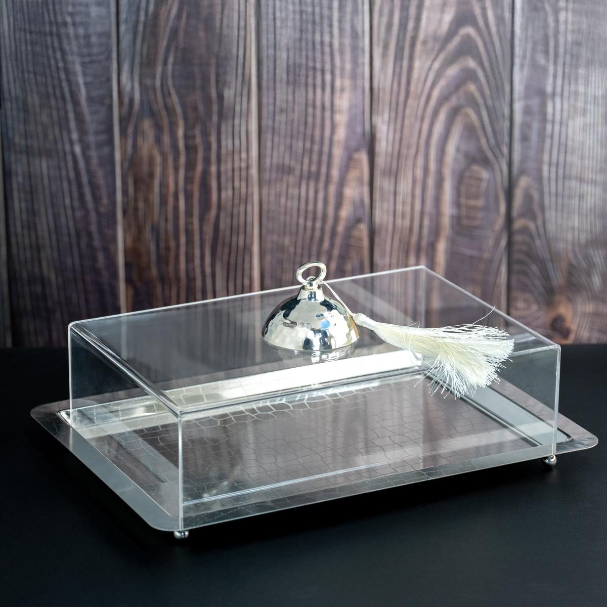 صينية تقديم فاخرة بغطاء فضي على شكل قبة مع مقبض حلقة