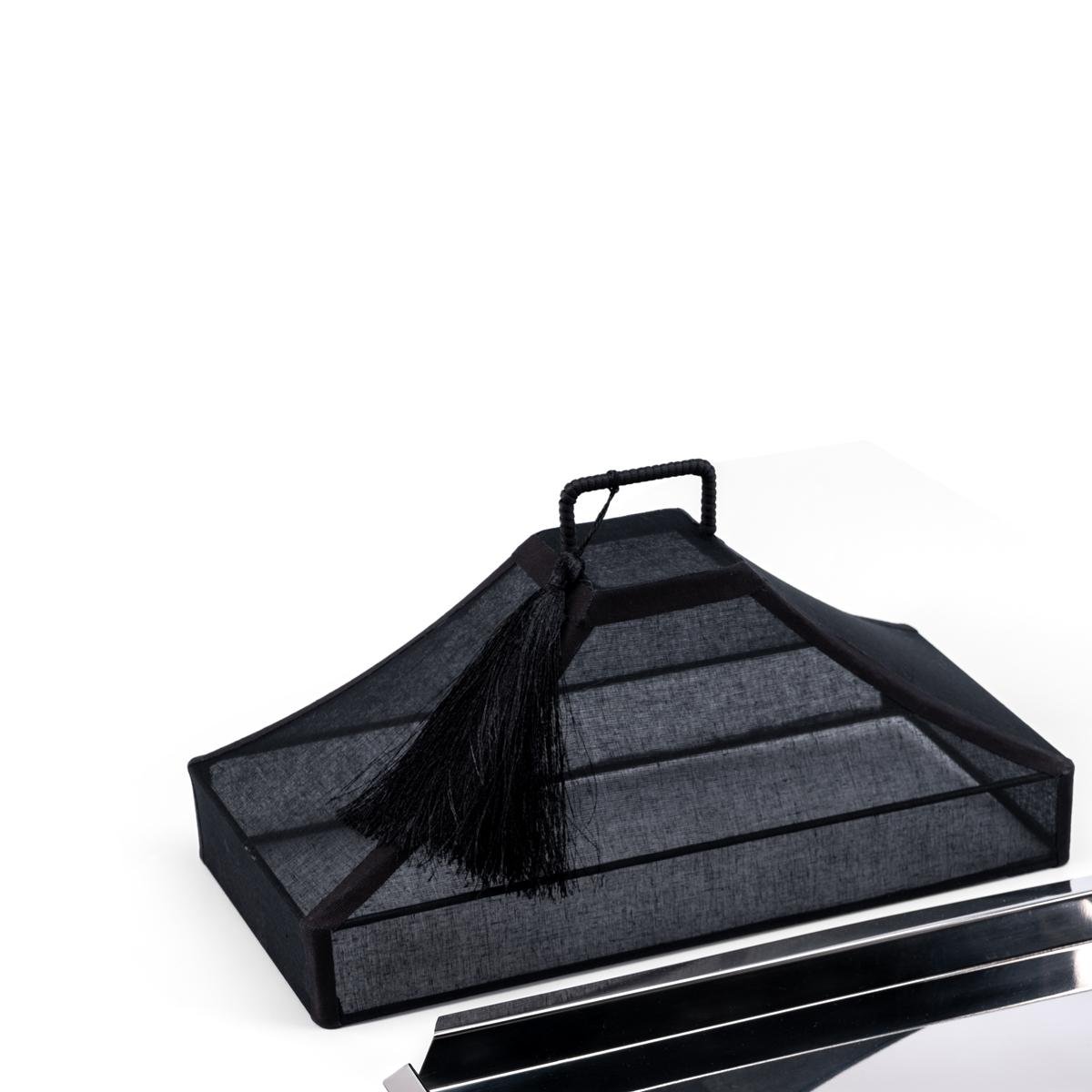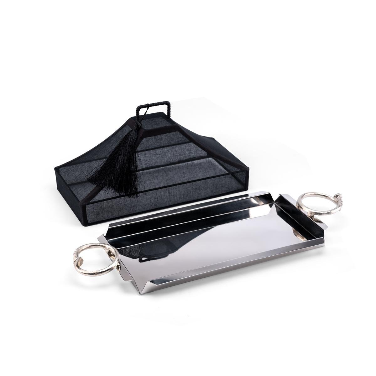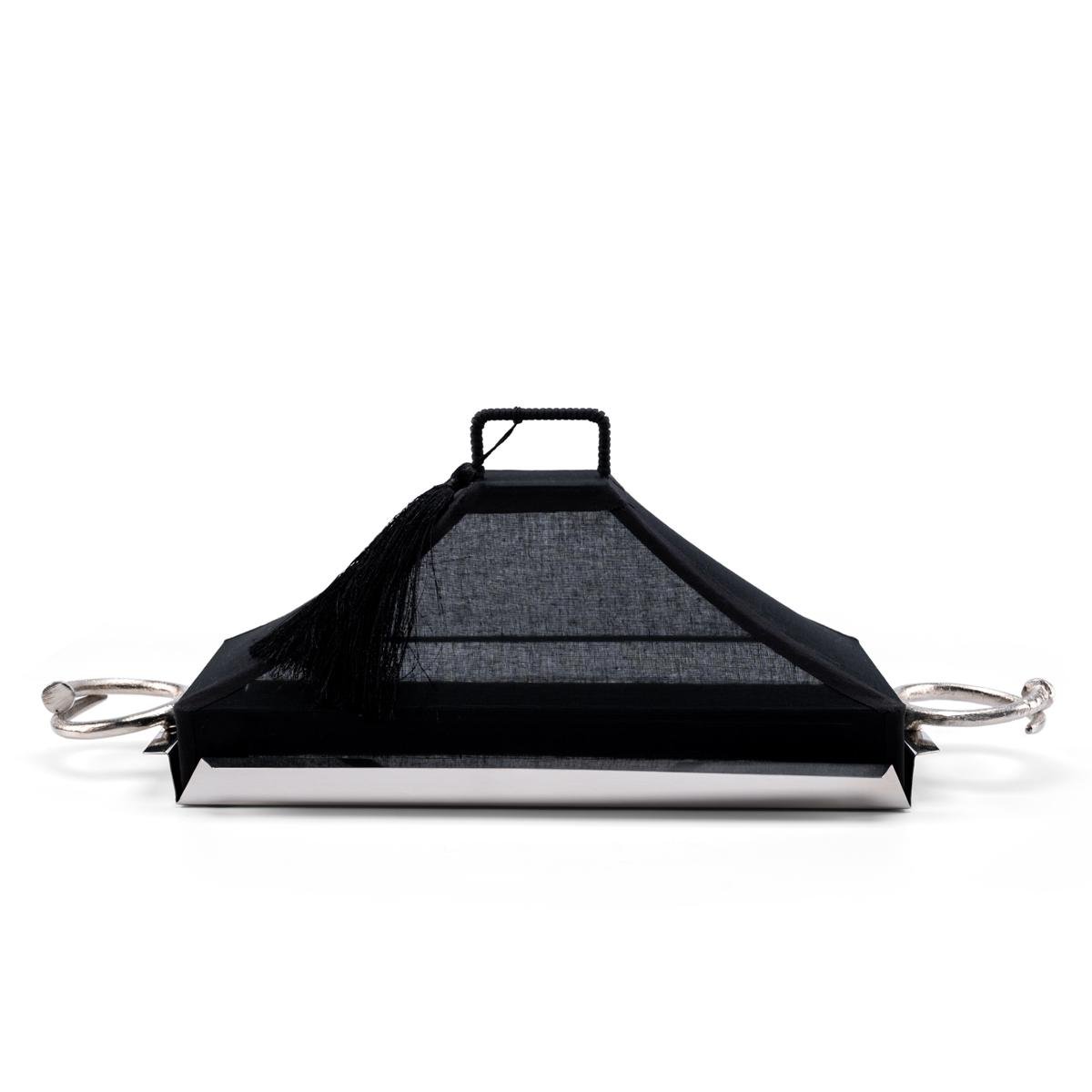 تتميز بمقبض مسمار أنيق على طراز كارتييه. مصنوعة بدقة، هذه الصينية مثالية لتقديم الحلويات والمأكولات الشهية الأخرى بأسلوب راقٍ. تأتي الصينية مع غطاء قماش قطني أنيق، لضمان بقاء الحلويات طازجة ومحفوظة.