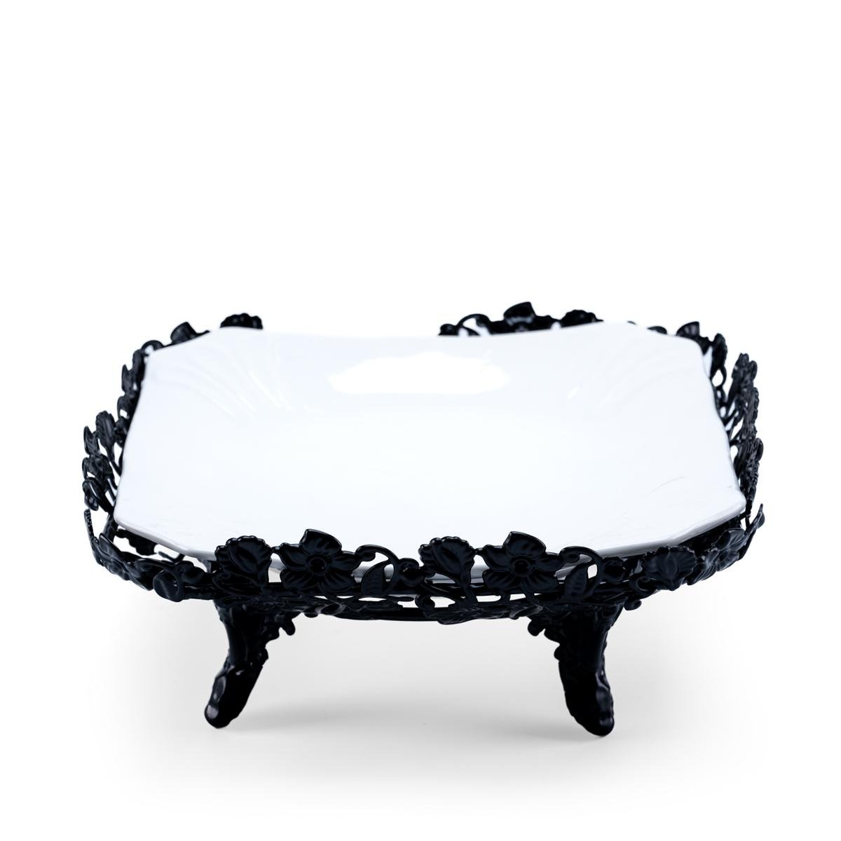 color - black - Metal frame with intricate floral detailing with ceramic Plate size: 21x21