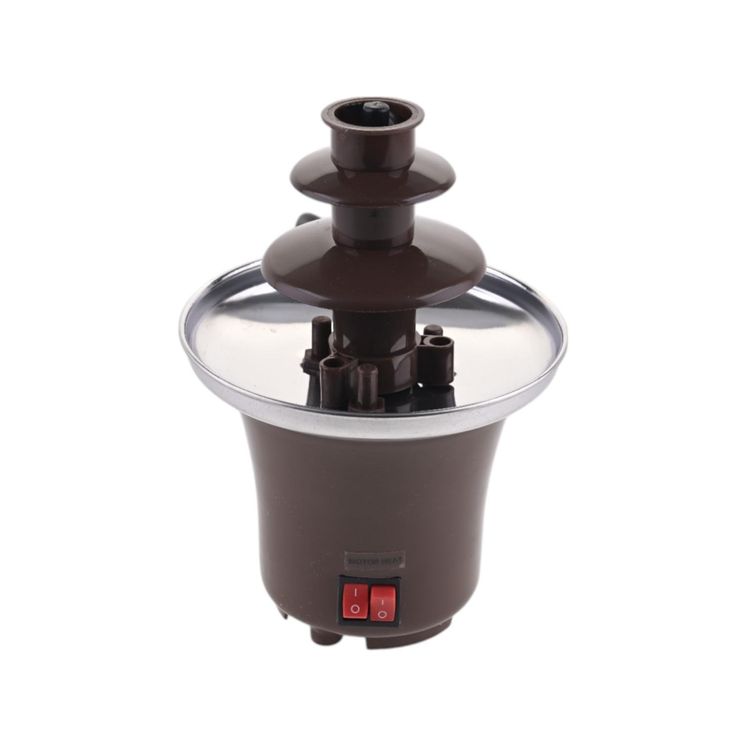 نافورة شوكولاتة صغيرة مبهجة مثالية للحفلات ، تقدم تدفقا مستمرا من الشوكولاتة المذابة لتغمس الفواكه والحلويات.
