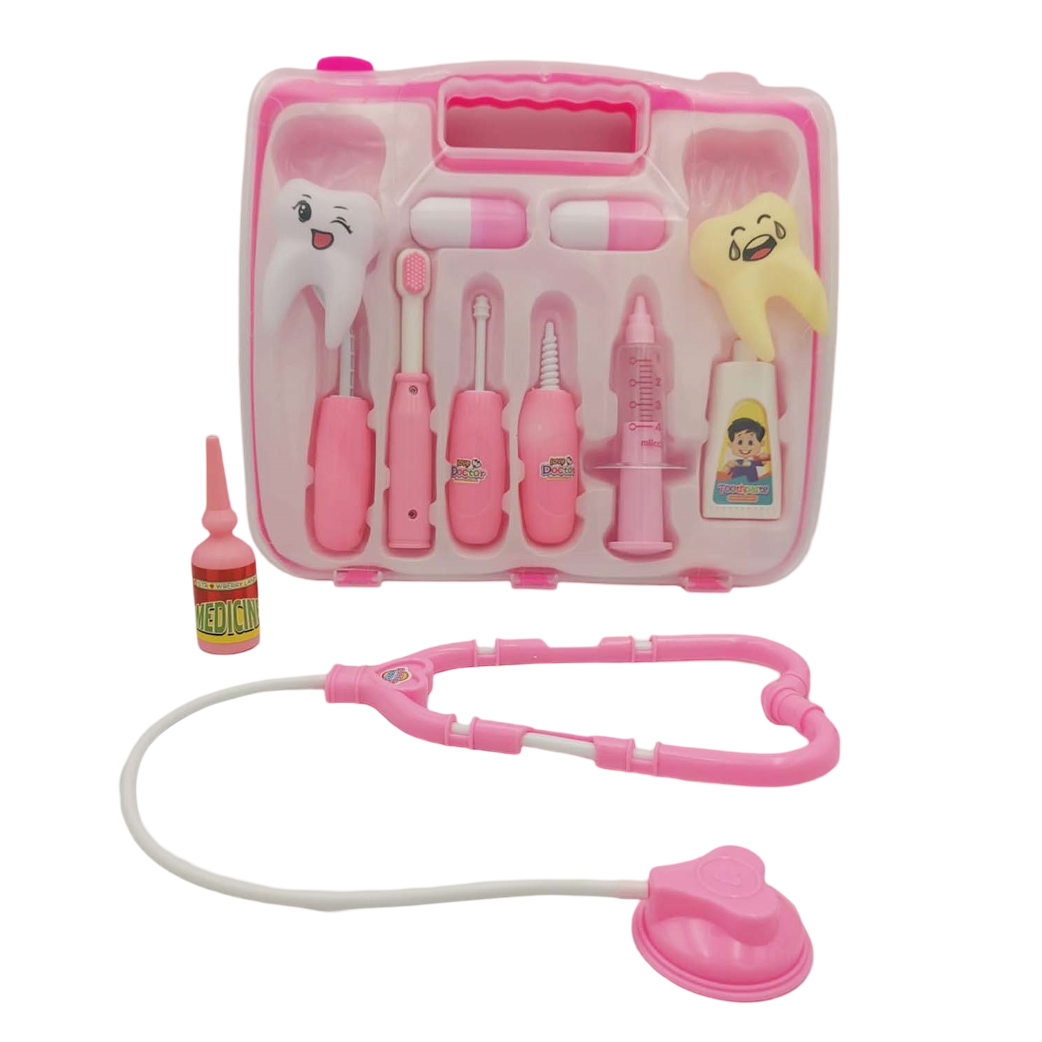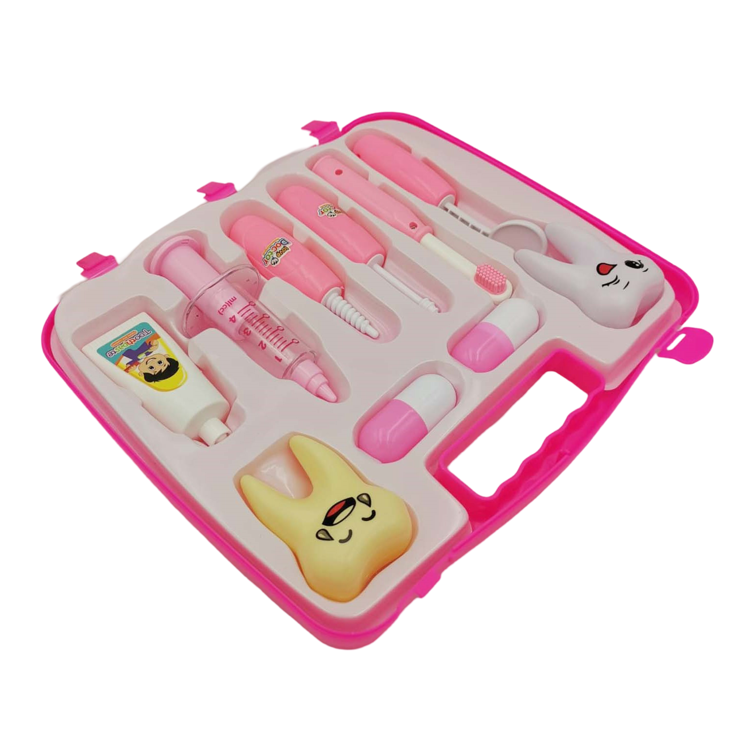 اجعل طفلك يستكشف عالم طب الأسنان المثير مع مجموعة لعب طبيب الأسنان المصغرة للأطفال مع حقيبة حمل أنيقة باللون الوردي، تتضمن هذه المجموعة التفاعلية كل الأدوات الأساسية للعناية بالأسنان بشكل تخيلي، مثل فرشاة الأسنان، مرآة الأسنان، الحقنة، وحتى شخصيتين لطيفتين على شكل أسنان. مصممة للأطفال من عمر 3 سنوات فما فوق، تعد هذه اللعبة المثالية لتعزيز اللعب التخيلي مع تعليم الأطفال أساسيات نظافة الفم. مثالية لتخفيف أي مخاوف تتعلق بزيارة طبيب الأسنان.